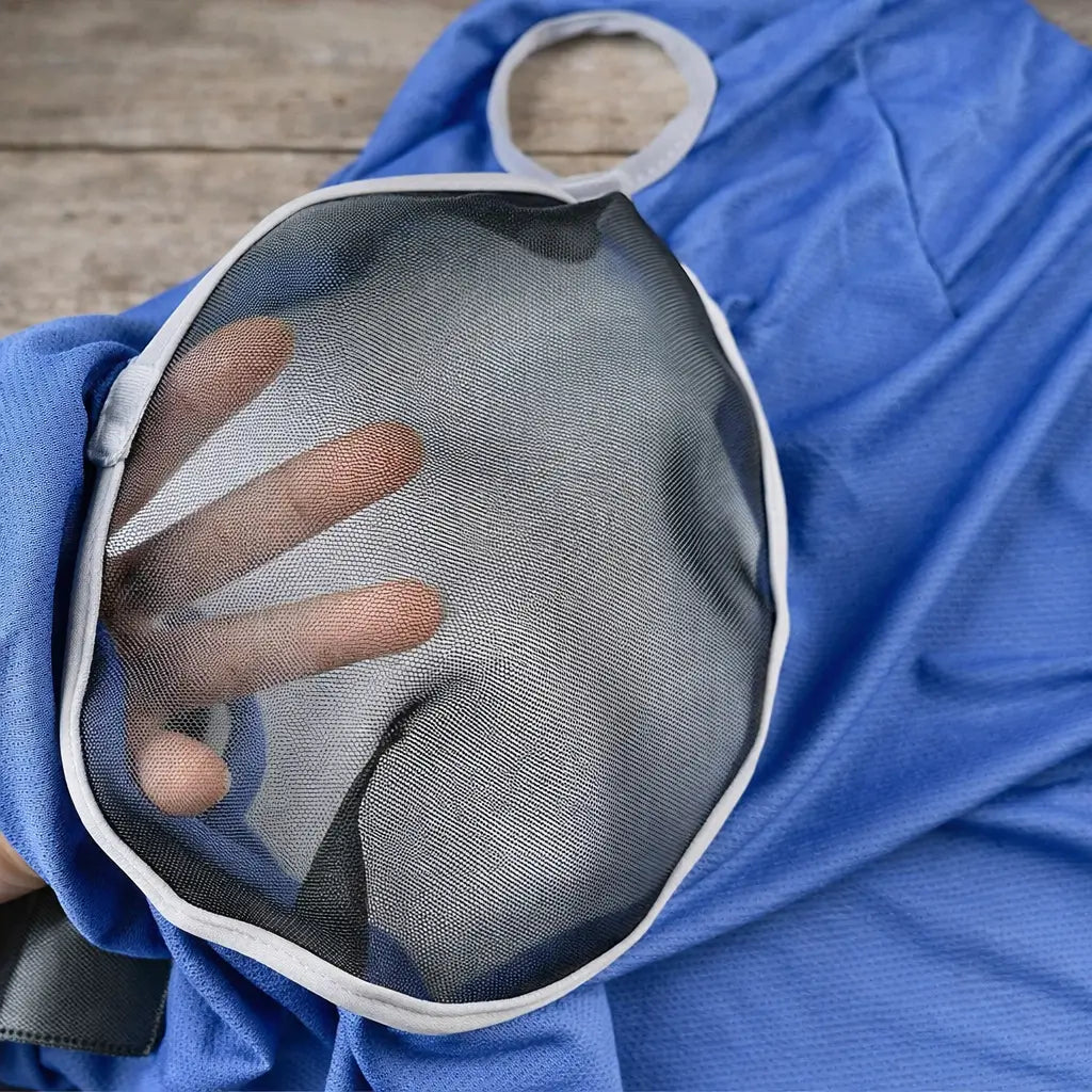 Fine mesh fabric effectively keeps flies, mosquitoes, and other insects away and protects sensitive eye and ear areas.