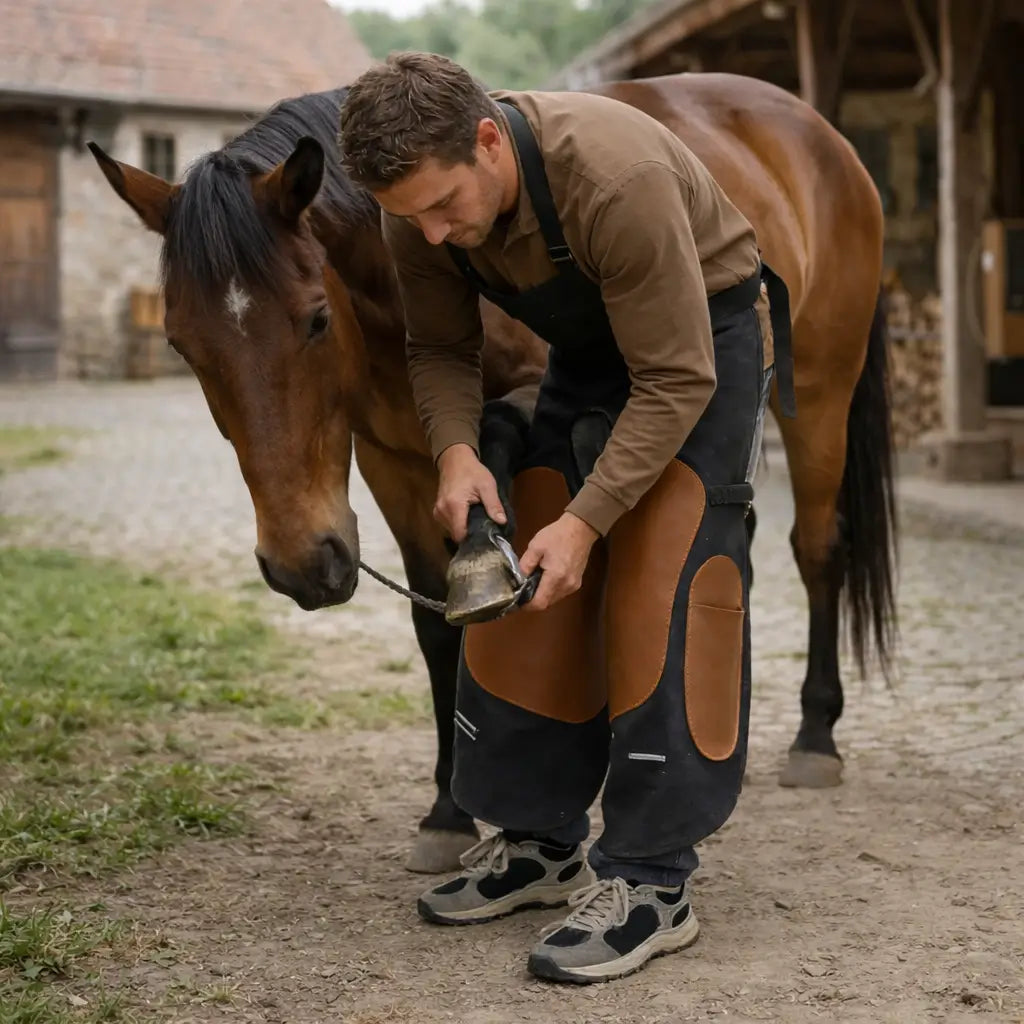 Every movement counts when working with horses – and reliable protection is crucial. This sturdy farrier apron protects your legs from dirt, tool contact, and strain while allowing you to work flexibly and efficiently. Ideal for stable work, hoof care, and workshop tasks.