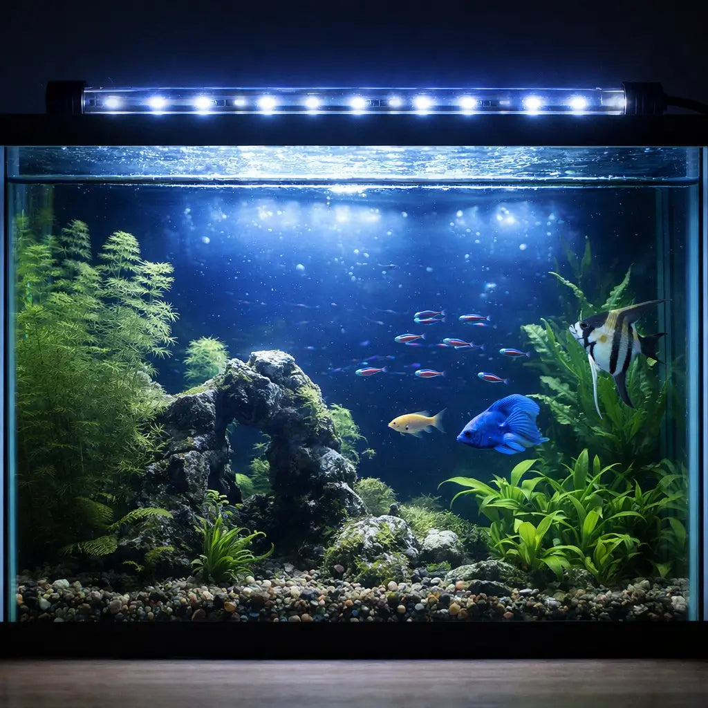 Assurez un éclairage clair et naturel de votre aquarium – installé sous l'eau ou au-dessus. Cette lampe LED étanche pour aquarium offre trois modes lumineux au choix et favorise à la fois la croissance des plantes et l’intensité des couleurs de vos poissons.