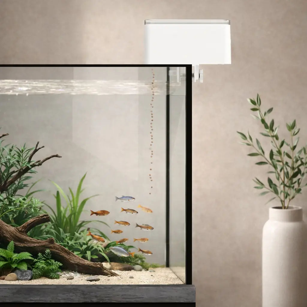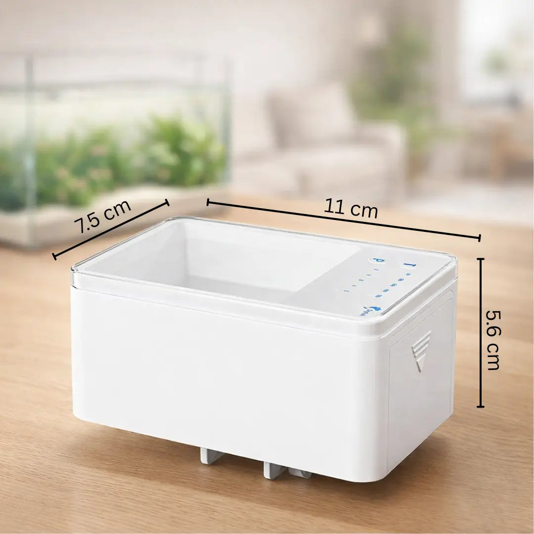 Avec seulement 11 × 7,5 × 5,6 cm, l'automate est idéal pour les aquariums petits et moyens – monté de manière discrète et peu encombrante.