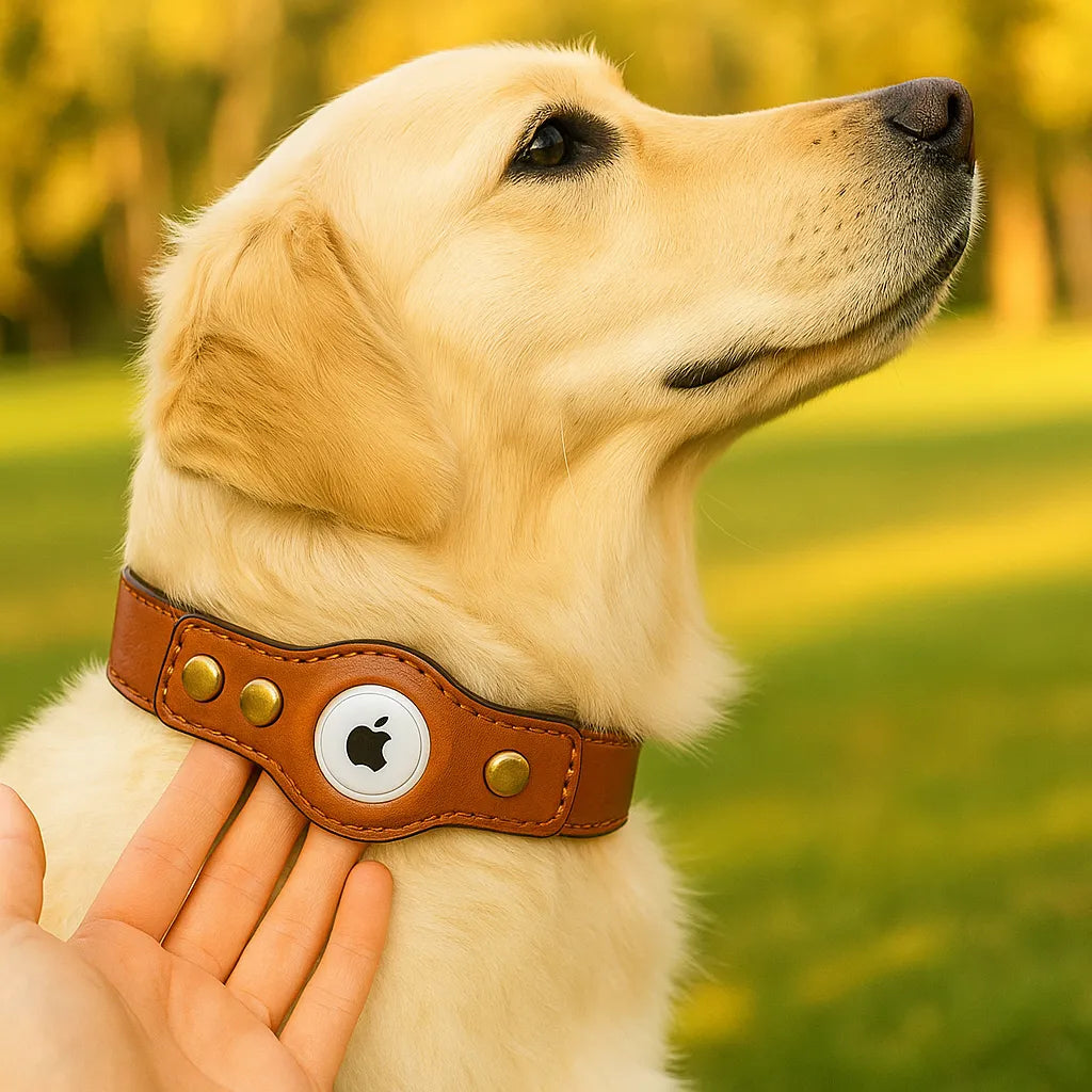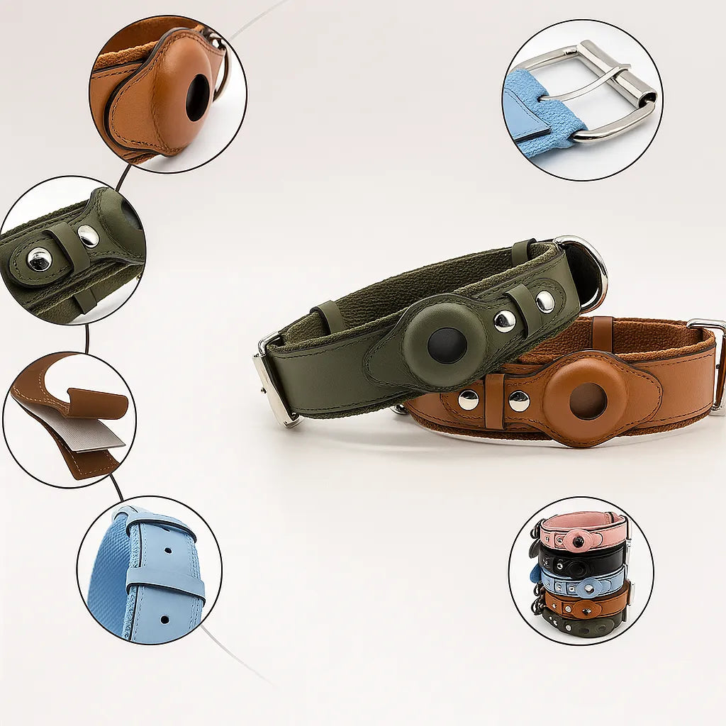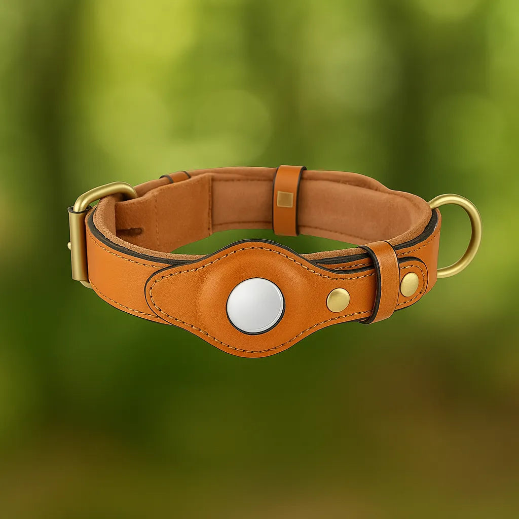 Leder Hundehalsband mit AirTag Halterung – Gepolstert & Sicher