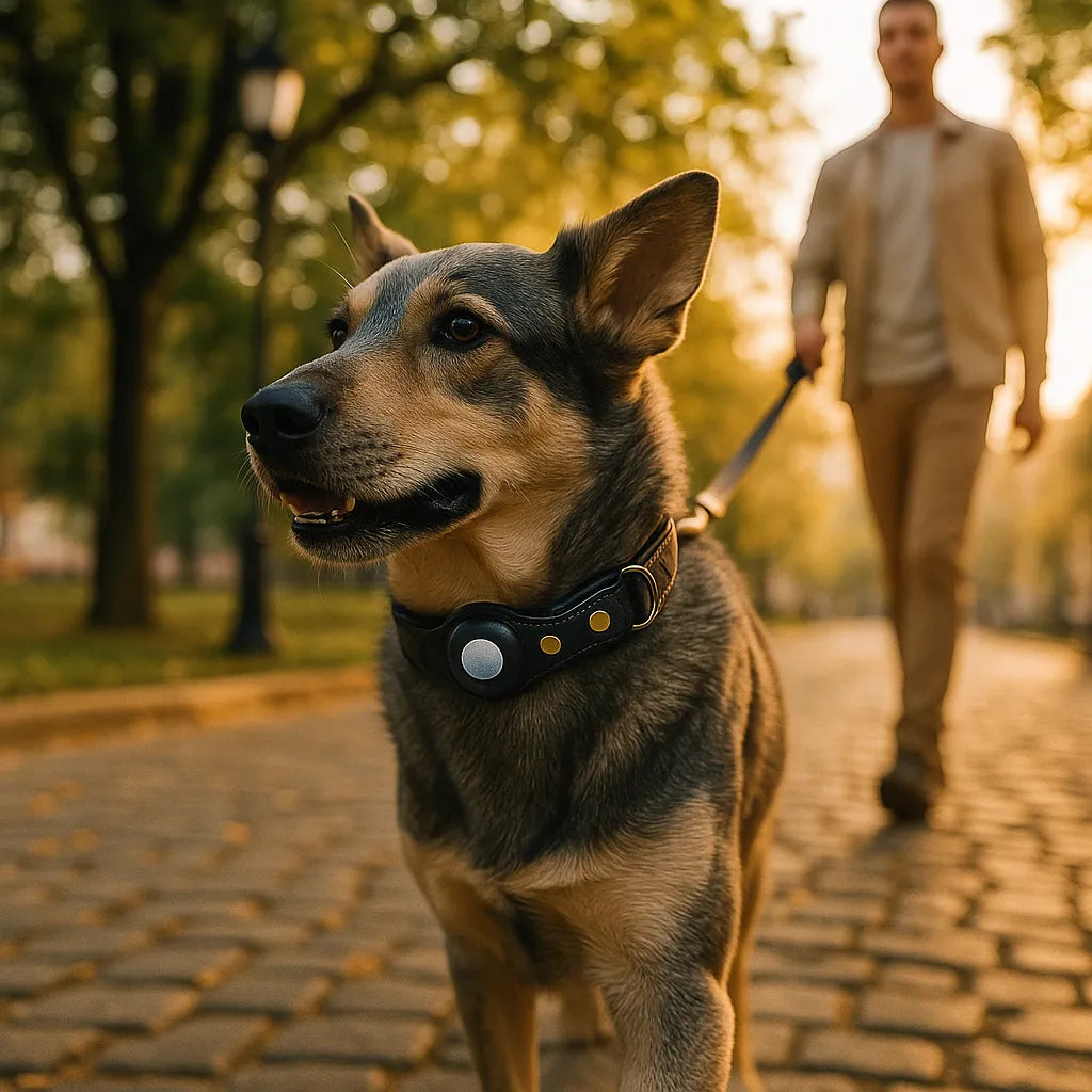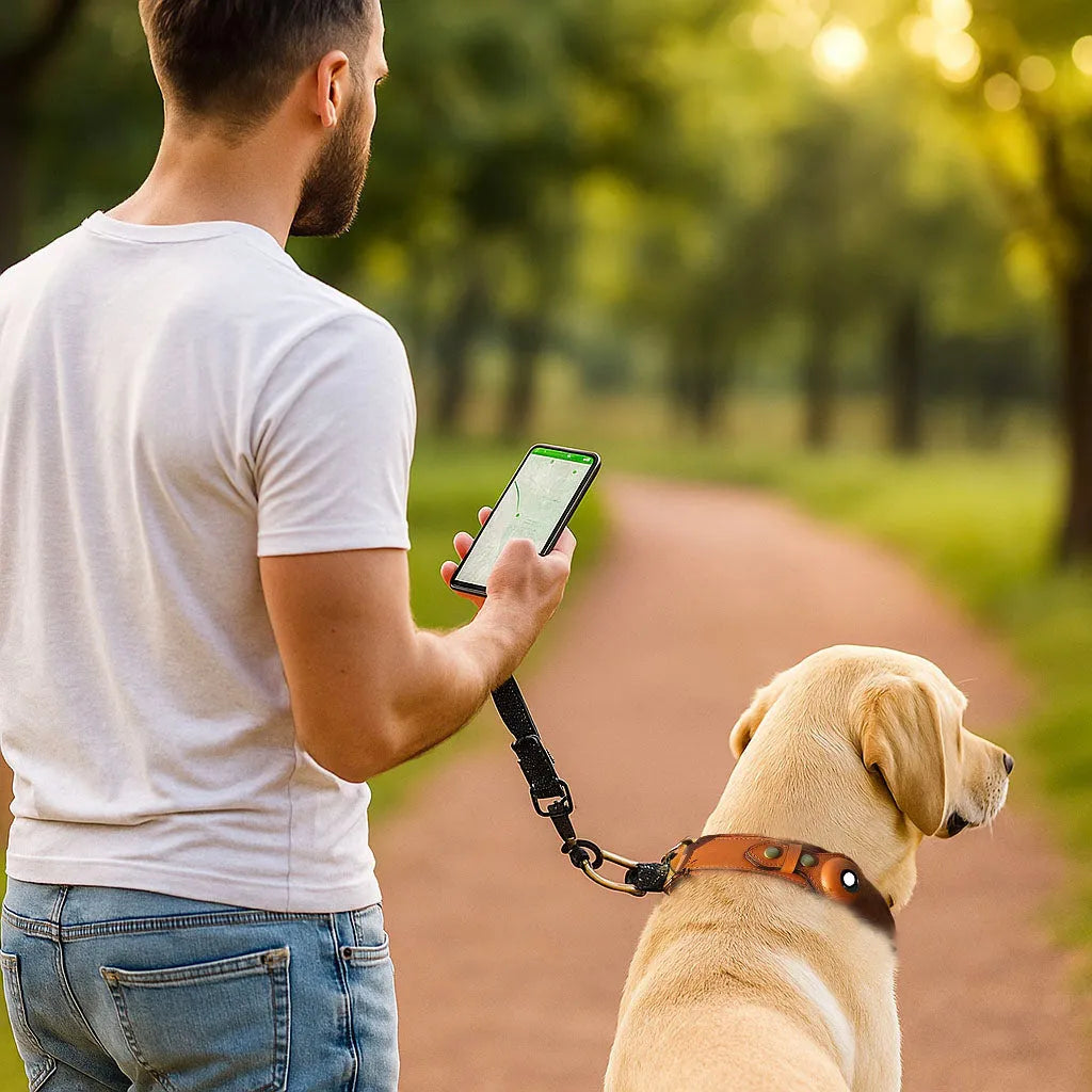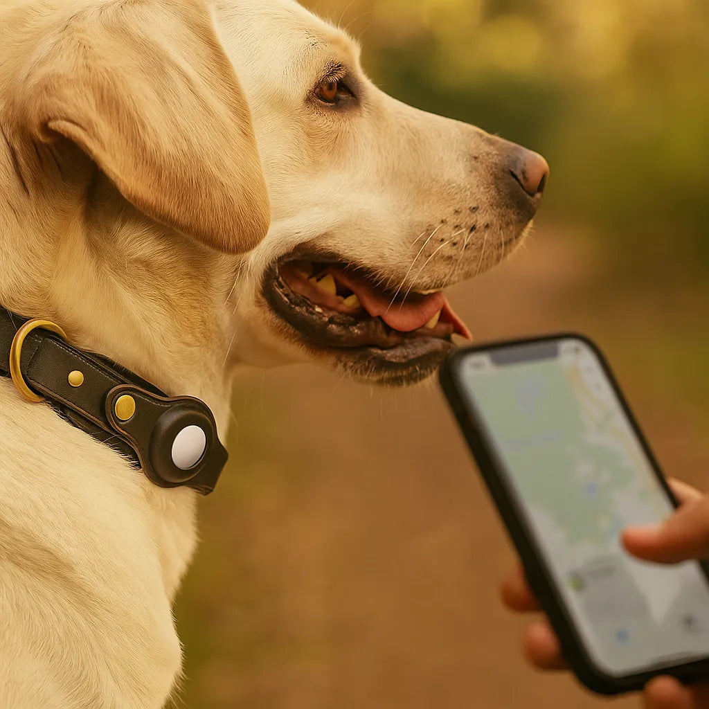 Du willst deinen Hund nie wieder aus den Augen verlieren? Dieses hochwertige Lederhalsband wurde speziell entwickelt, um deinen eigenen Apple AirTag sicher zu halten. So kannst du deinen Vierbeiner jederzeit über die „Wo ist?“-App von Apple orten – ganz ohne Abo.