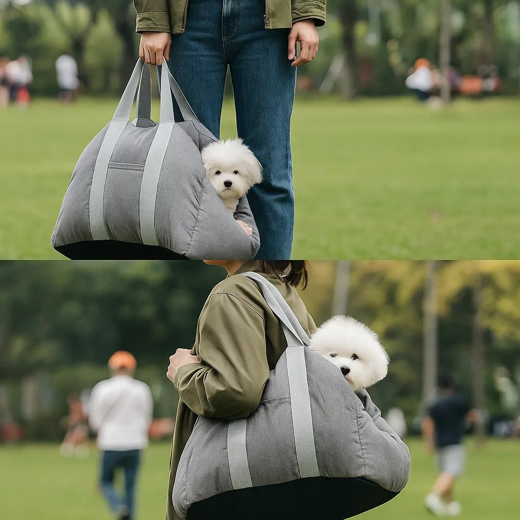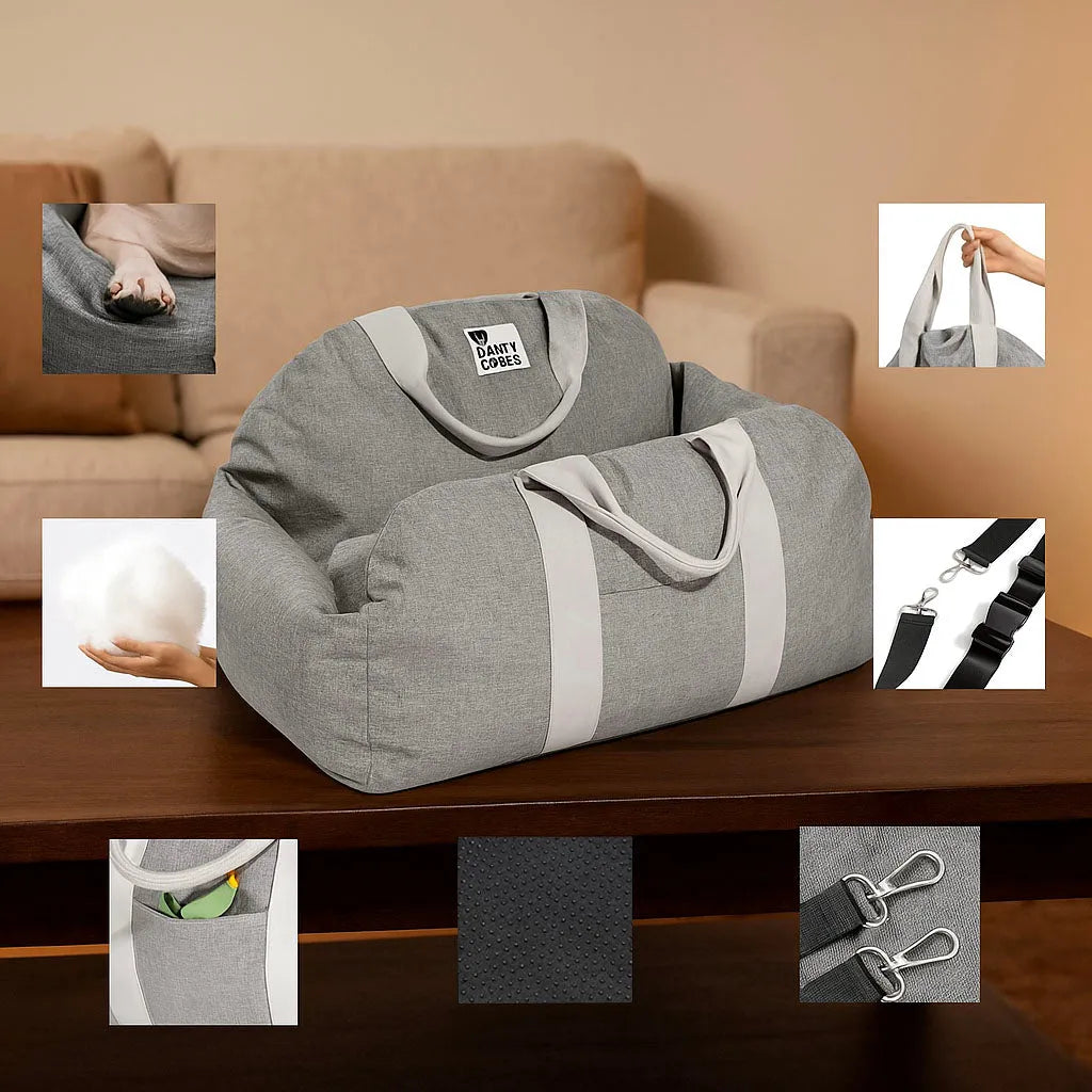 Nutzbar als Auto‑Sitz oder Handtasche mit zwei Trageoptionen. Mit integrierter Sicherheitsleine und rutschfestem Boden bleibt dein Haustier stabil und geschützt.