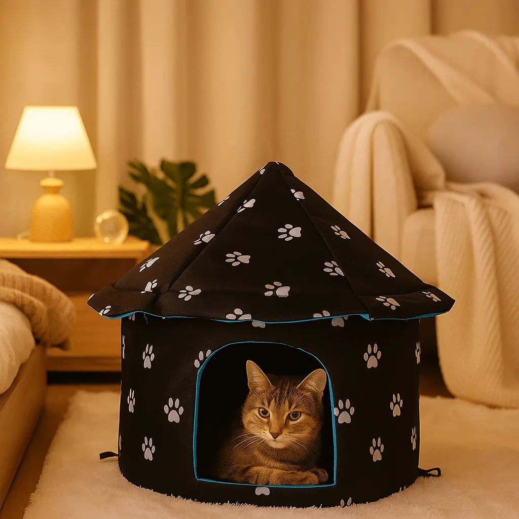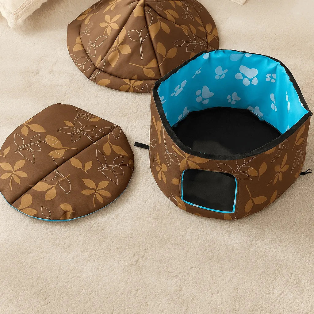 Katzen lieben es, sich in einer sicheren und warmen Höhle zu verstecken. Mit diesem faltbaren Katzenbett in Höhlenform bietest du deinem Stubentiger genau das, eine kuschelige Schlafhöhle, die Schutz, Geborgenheit und Komfort vereint. Ideal für entspannte Nickerchen, besonders in Herbst und Winter.