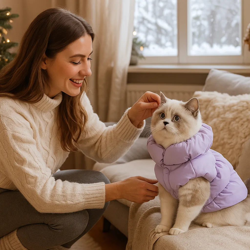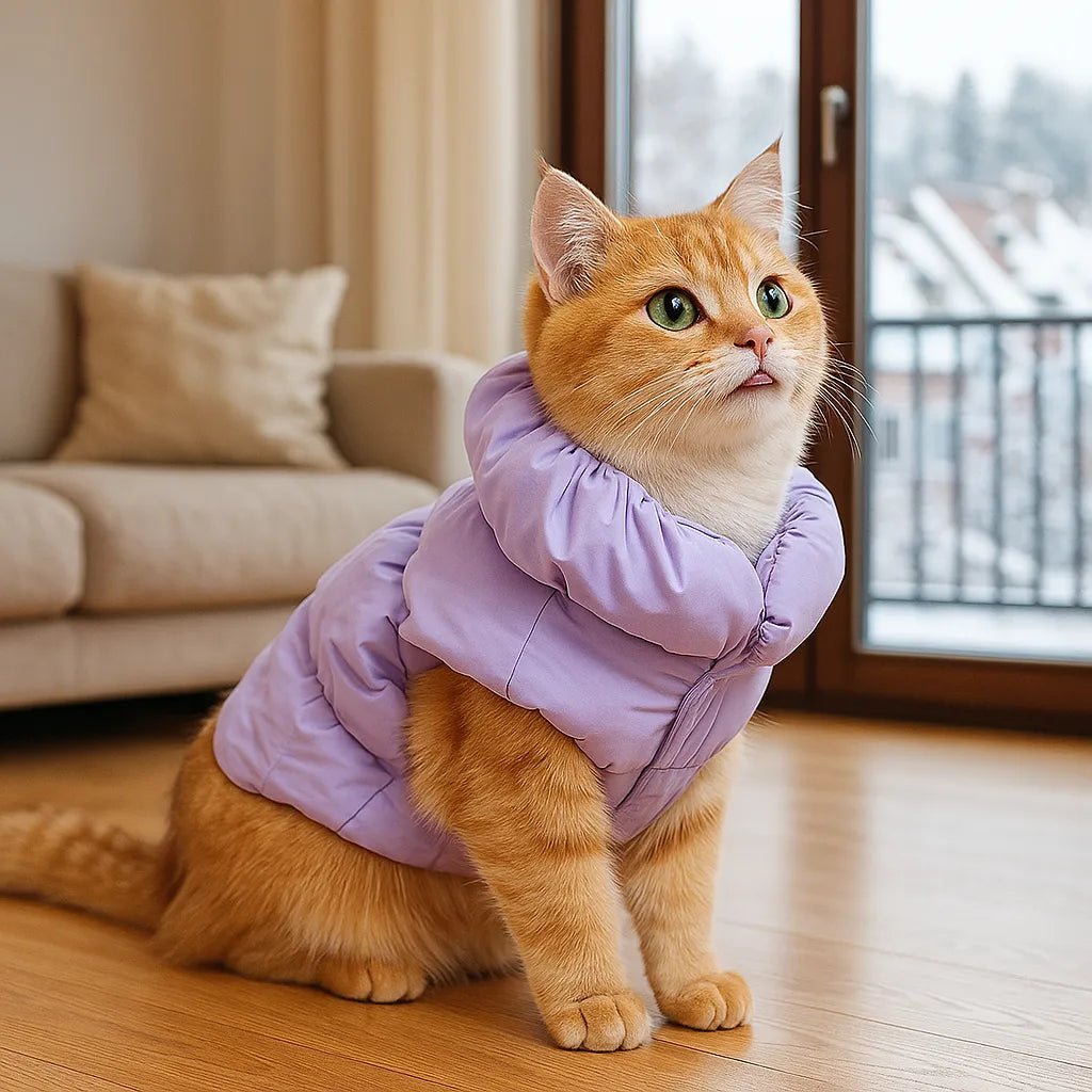 Dieser weiche Wintermantel schützt deine Katze zuverlässig vor Kälte, Wind und Feuchtigkeit. Ob bei Spaziergängen im Freien oder einfach als kuschelige Schicht drinnen, die dicke Fütterung sorgt für angenehme Wärme, während das wasserabweisende Außenmaterial ideal für regnerische oder verschneite Tage ist.