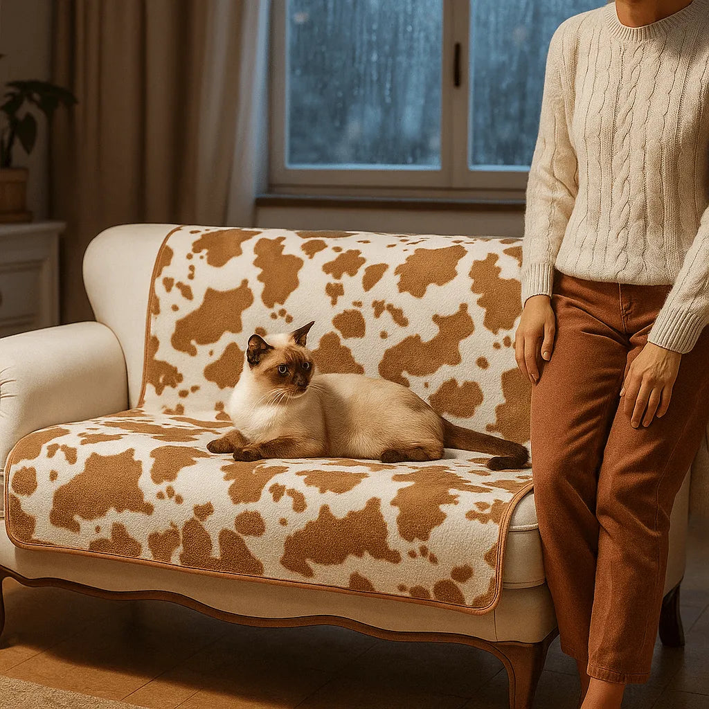 Katzen Sofabezug mit Kuhprint | Kuscheliger Schutz & Wärme im Winter