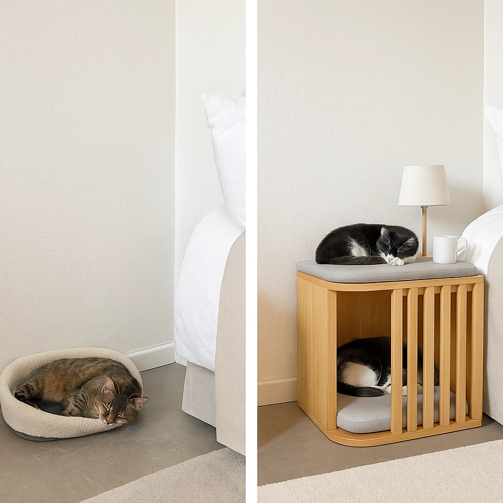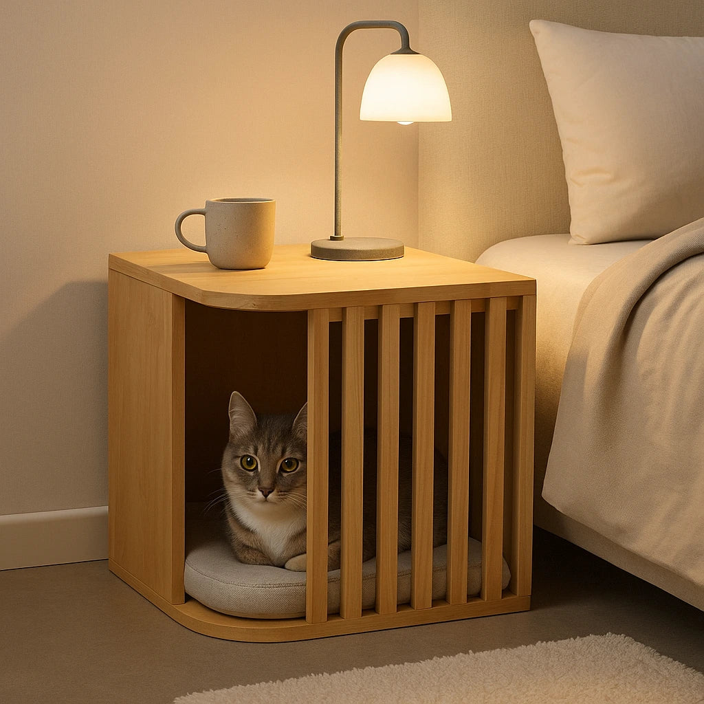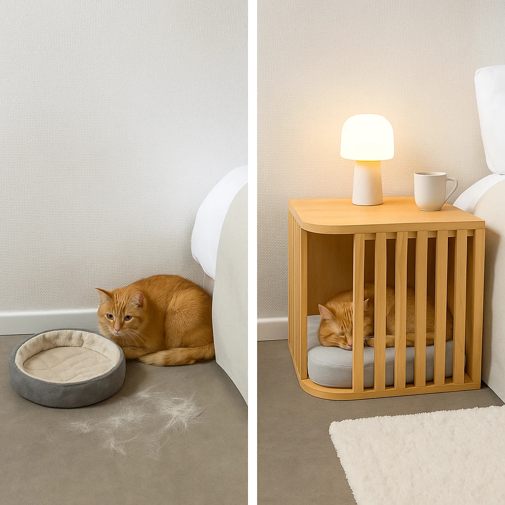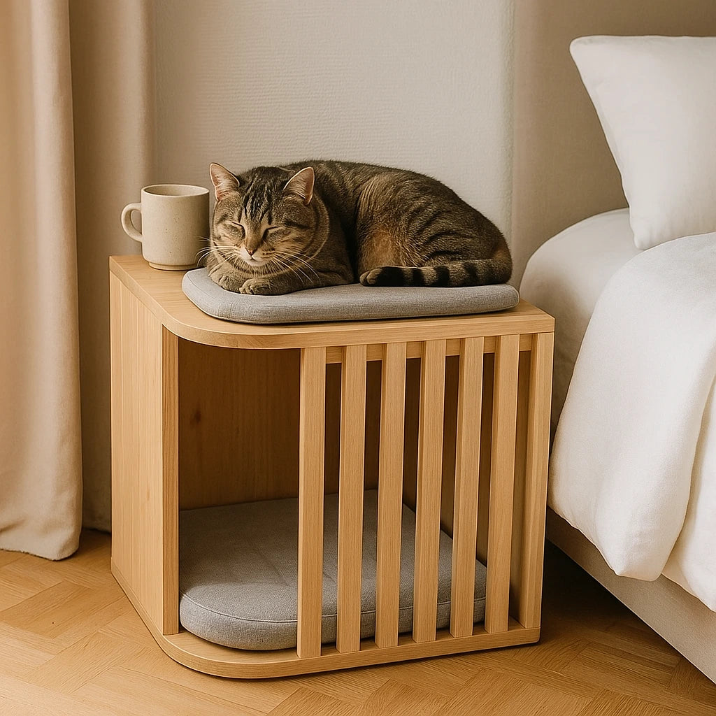 Nachttisch mit integrierter Katzenhöhle – 2-in-1 Möbelstück für Stil & Tierkomfort