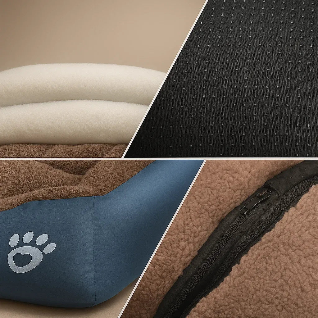 Mit diesem Hundebett aus weichem, veganem Fellstoff schenkst du deinem Vierbeiner den Komfort, den er verdient, ein gemütlicher Rückzugsort, der Sicherheit, Wärme und Entspannung bietet.