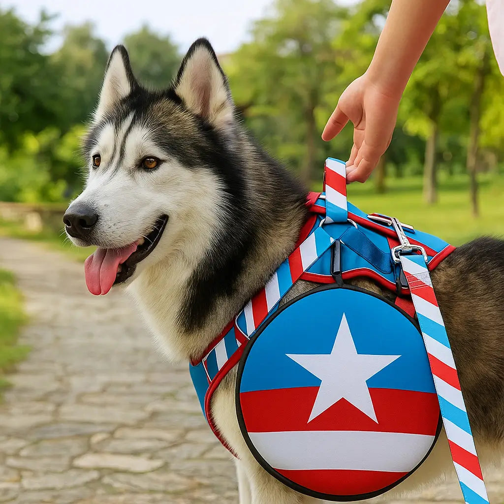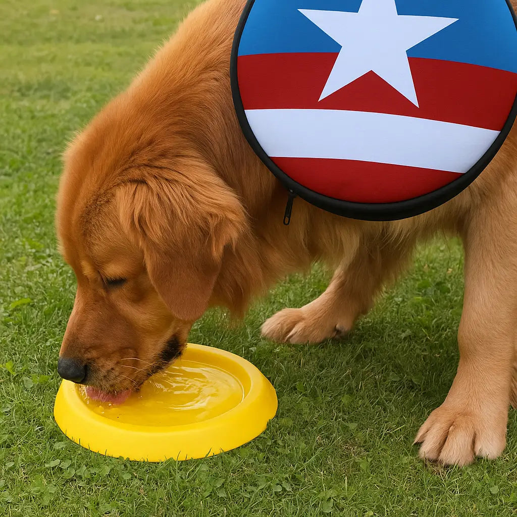 Mit abnehmbaren Taschen für Leckerlis, Beutel oder Spielzeug, alles griffbereit unterwegs. Das mitgelieferte Frisbee dient zugleich als Trink- oder Snack-Schale.