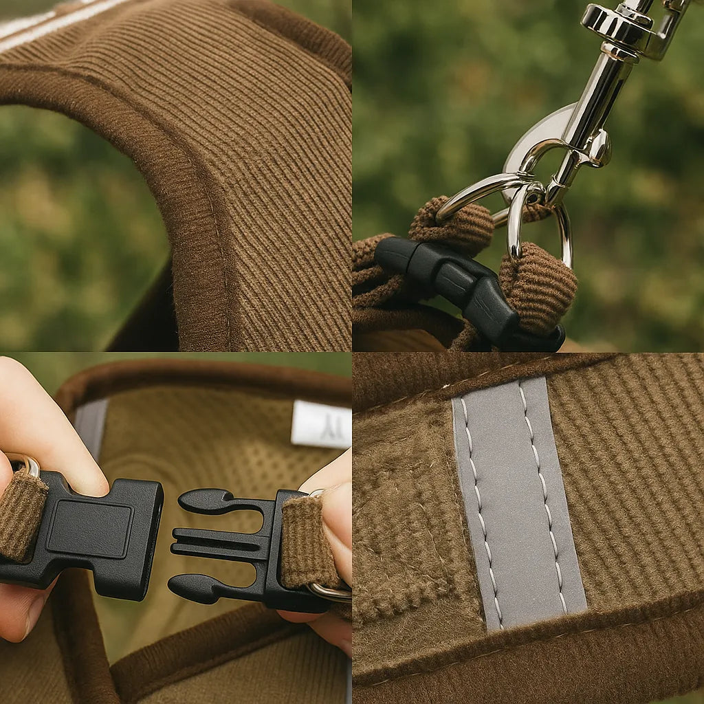 Gefertigt aus atmungsaktivem Kordstoff, schmiegt sich das Geschirr angenehm an und verhindert Scheuern – ideal für lange Spaziergänge.