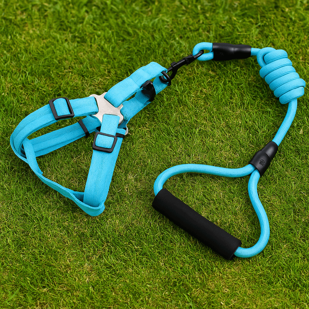Dieses verstellbare Hundegeschirr mit passender Leine ist die ideale Lösung für entspannte Spaziergänge im Alltag. Es verteilt den Druck gleichmäßig auf den Körper, schützt den empfindlichen Halsbereich und bietet deinem Hund eine bequeme Passform. Mit verschiedenen Farbvarianten kannst du das Set individuell anpassen, praktisch, stilvoll und sicher zugleich.