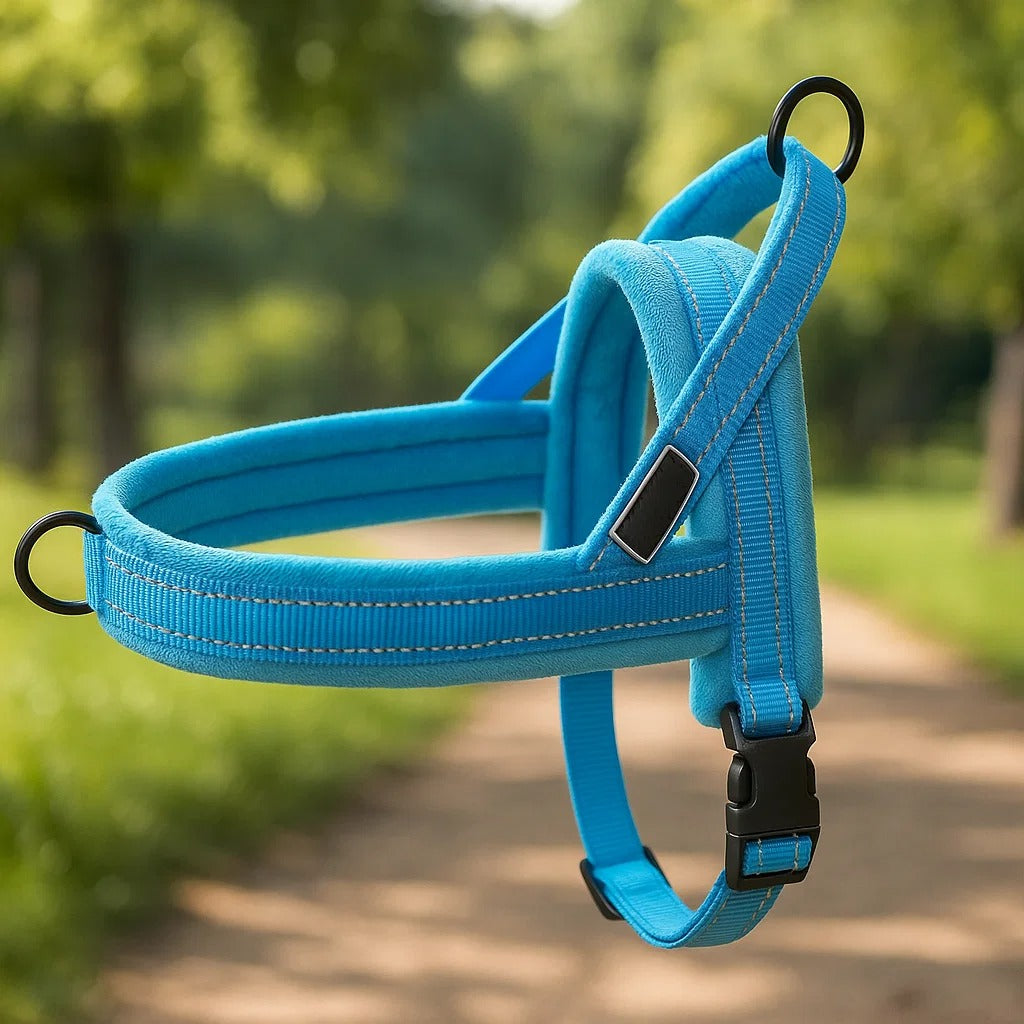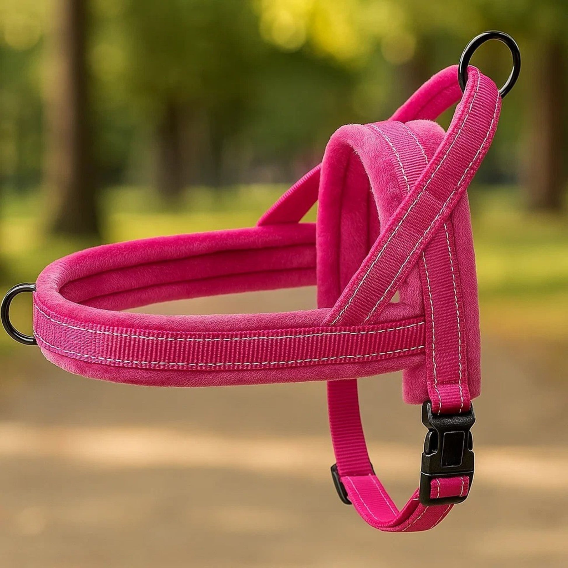 Ein Hundegeschirr, das Sicherheit, Komfort und Wärme vereint, ideal für entspannte Spaziergänge im Winter.