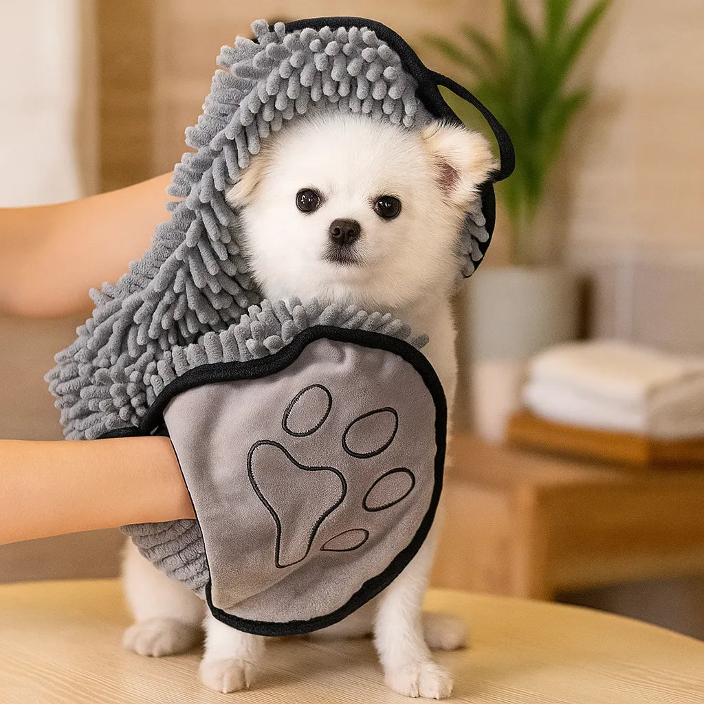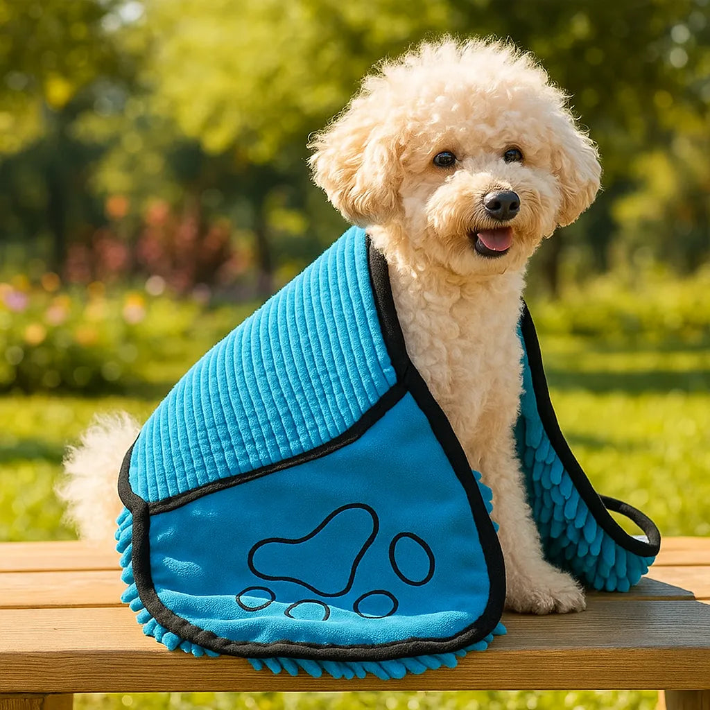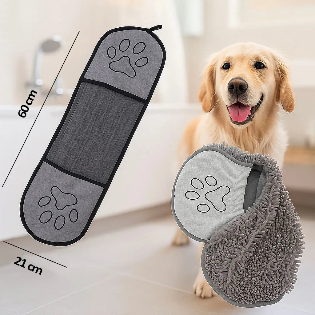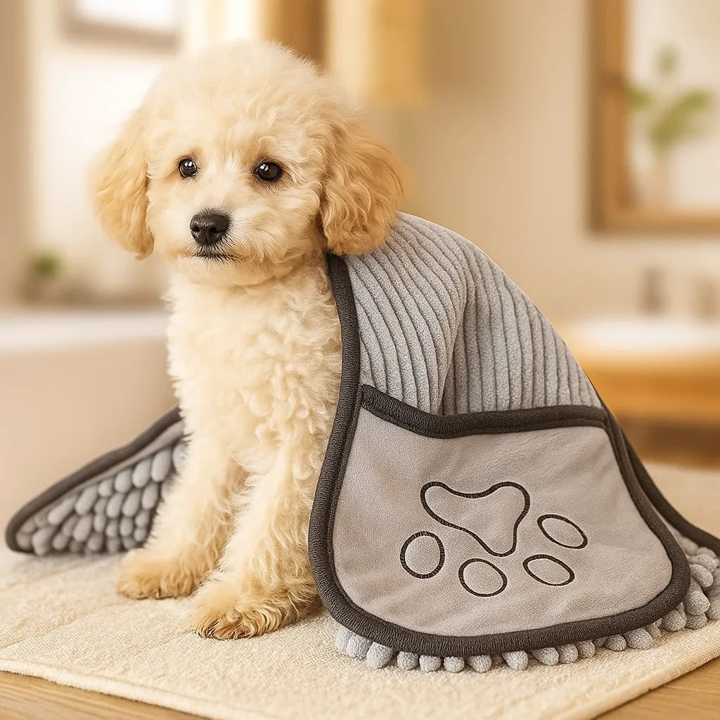 Hält Wasser im Tuch, nicht auf dem Boden oder den Möbeln – für ein sauberes Zuhause nach jedem Bad oder Spaziergang.