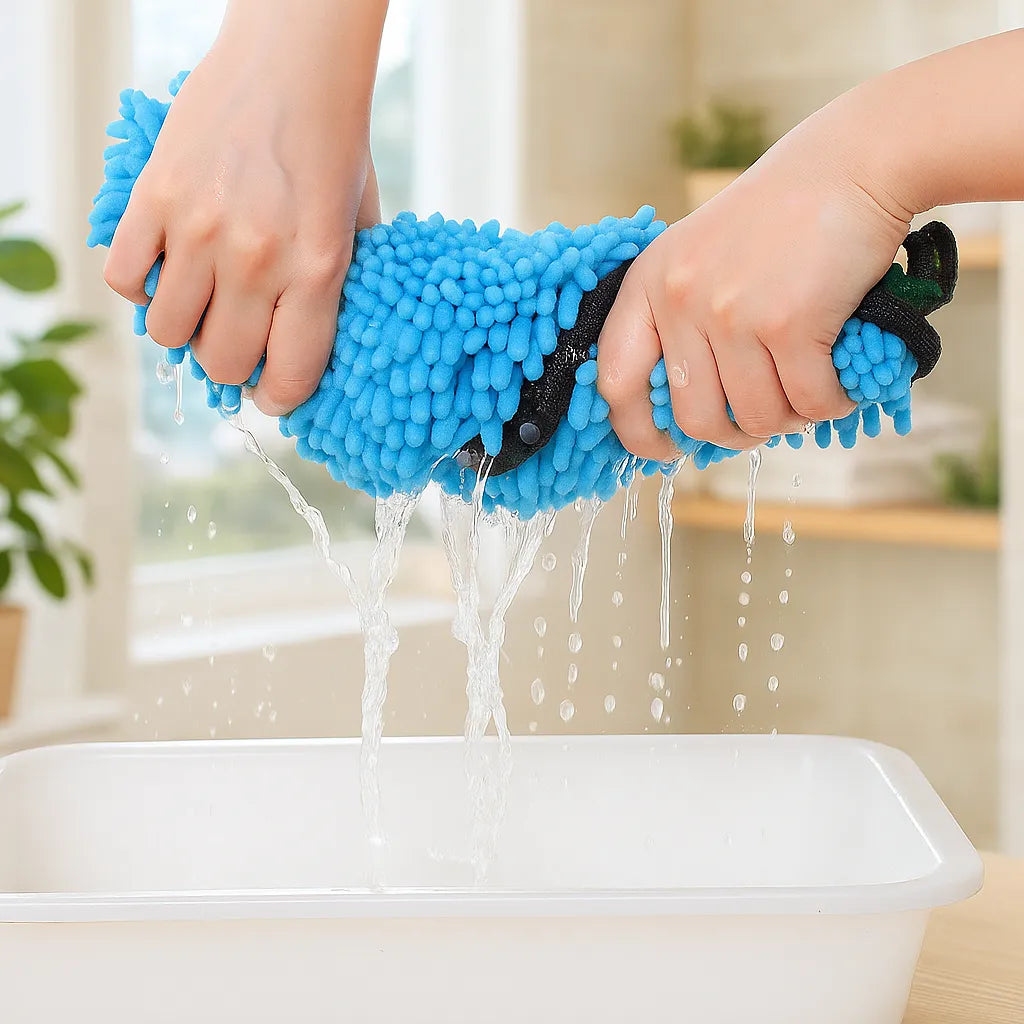 Die hochwertige Mikrofaser absorbiert große Mengen Wasser in Sekunden und verkürzt die Trocknungszeit deutlich.