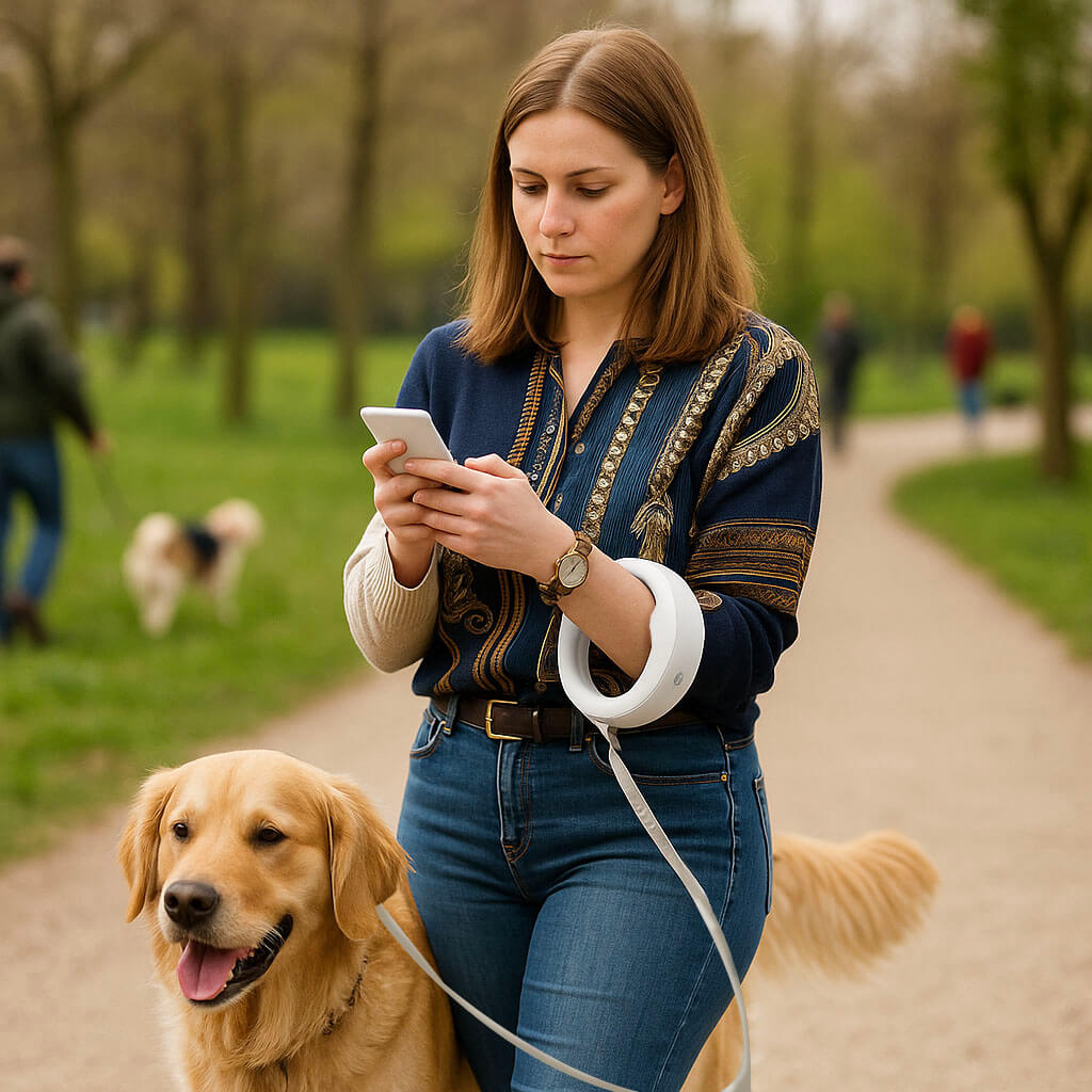 Eine Hundeleine, die Komfort, Sicherheit und Flexibilität vereint, für entspannte Spaziergänge bei jedem Wetter und zu jeder Tageszeit.