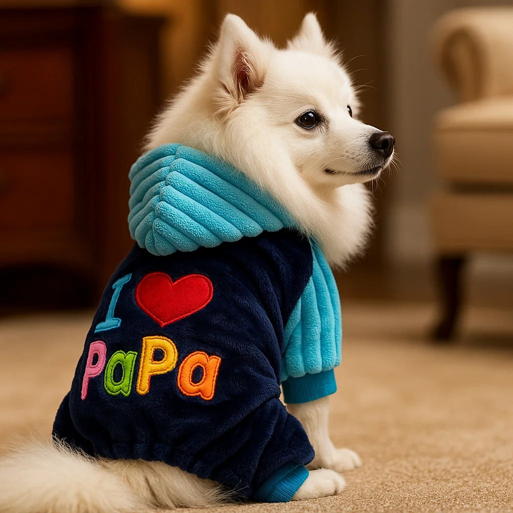 Dieser weiche Hundemantel im Jumpsuit-Stil hält deinen Vierbeiner nicht nur warm, sondern sorgt auch für einen bezaubernden Look.