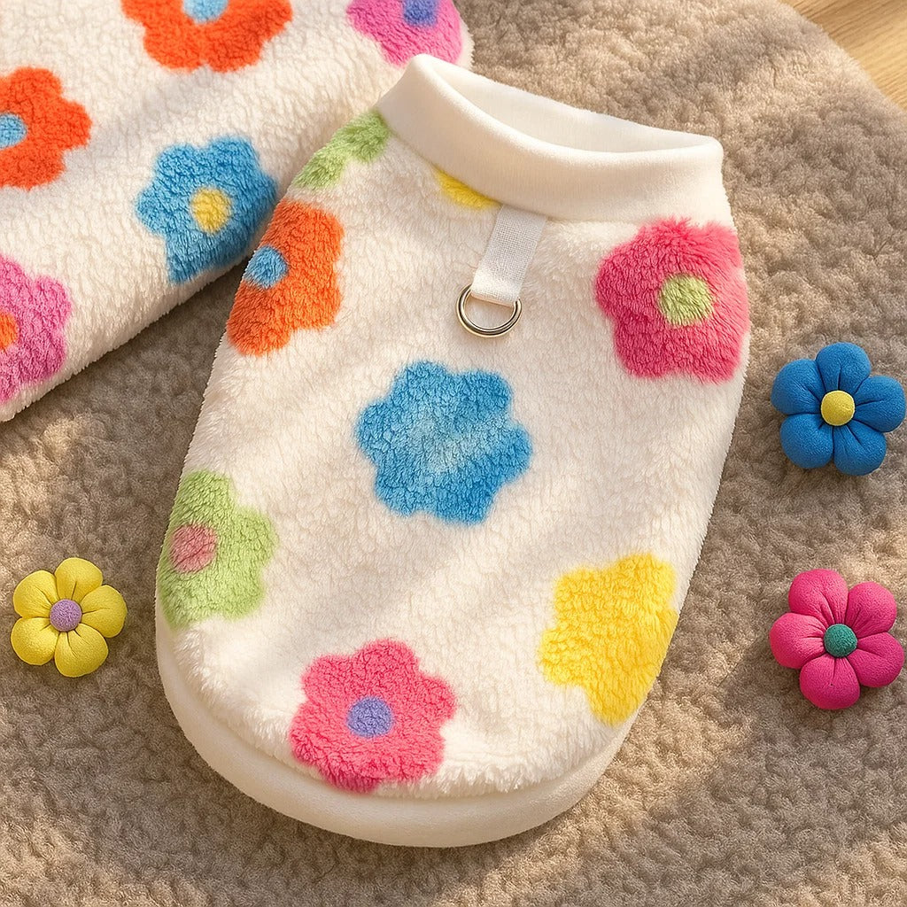 Dieser Hundepullover mit Blumenmuster verleiht deinem Vierbeiner einen charmanten, frischen Look, perfekt für Spaziergänge, Treffen oder gemütliche Tage zu Hause. Das weiche, atmungsaktive Material sorgt für Wärme und Komfort, ohne die Bewegungsfreiheit einzuschränken. Ein ideales Kleidungsstück für Hunde, die Stil und Gemütlichkeit gleichermaßen lieben.