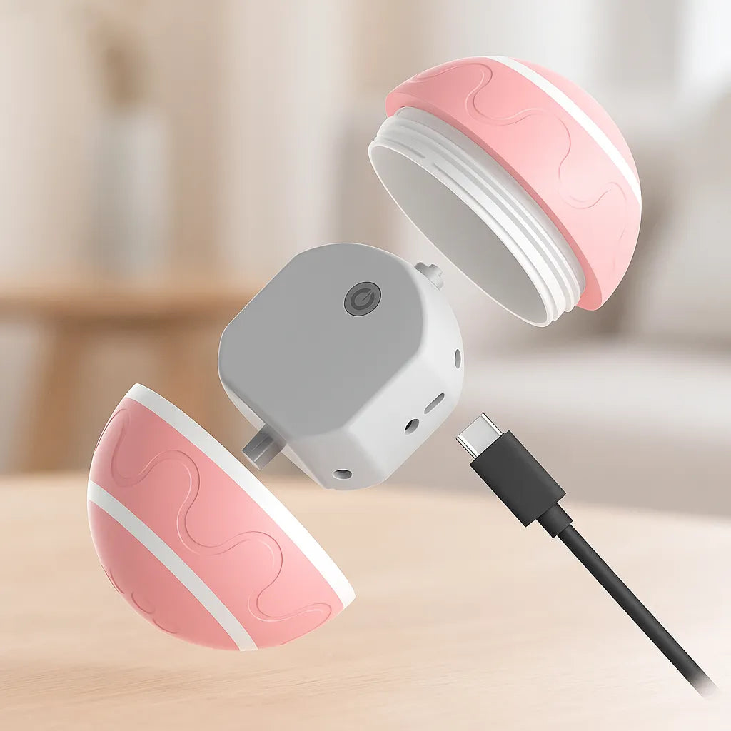 Der Ball rollt von selbst und ändert die Richtung bei Berührung, perfekt für neugierige und aktive Hunde.