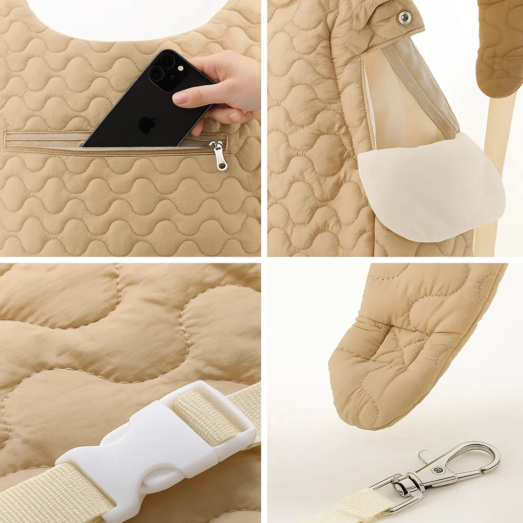 Ob beim Spaziergang, auf Reisen oder beim Einkaufen – für kleine Hunde kann die Welt draußen manchmal anstrengend oder stressig sein. Diese Hundetasche bietet eine geborgene, warme und sichere Umgebung, in der sich dein Vierbeiner wohlfühlt. Mit weichem, gestepptem Material, atmungsaktivem Innenfutter und praktischen Extras ist sie der ideale Begleiter für dich und deinen Hund.