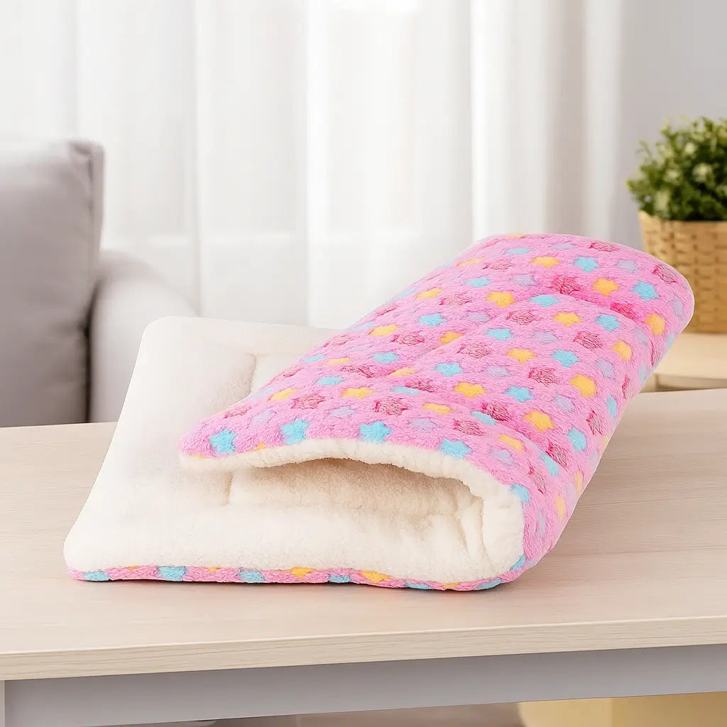 Das flauschige Fleece-Material hält warm, während die sanfte Polsterung optimalen Komfort bietet, egal ob auf dem Sofa, im Katzenkorb oder auf Reisen.