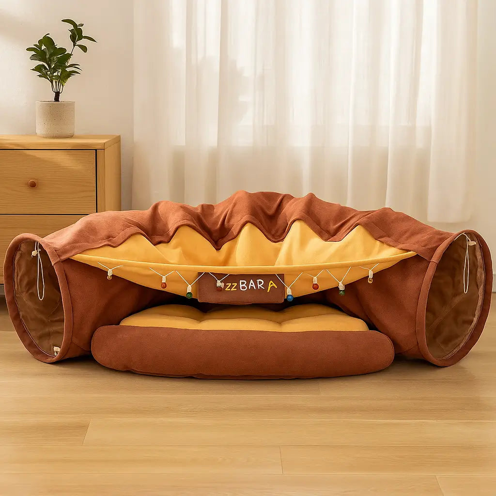 Katzenbett mit Tunnel | Faltbares Spiel- & Ruheparadies für Katzen