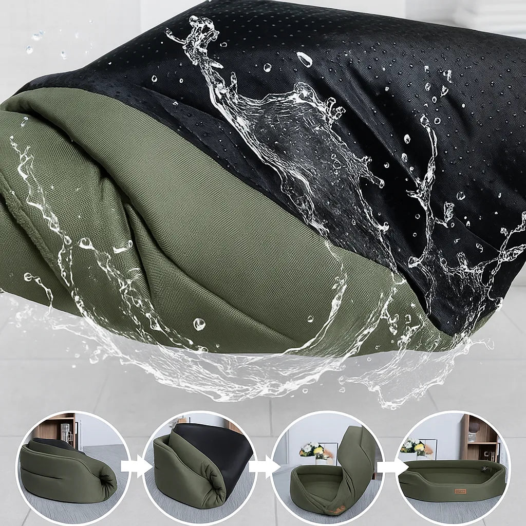 Flexibel einsetzbar: Egal ob auf dem Boden, Sofa oder in der Transportbox, dieses Bett passt überall hin.