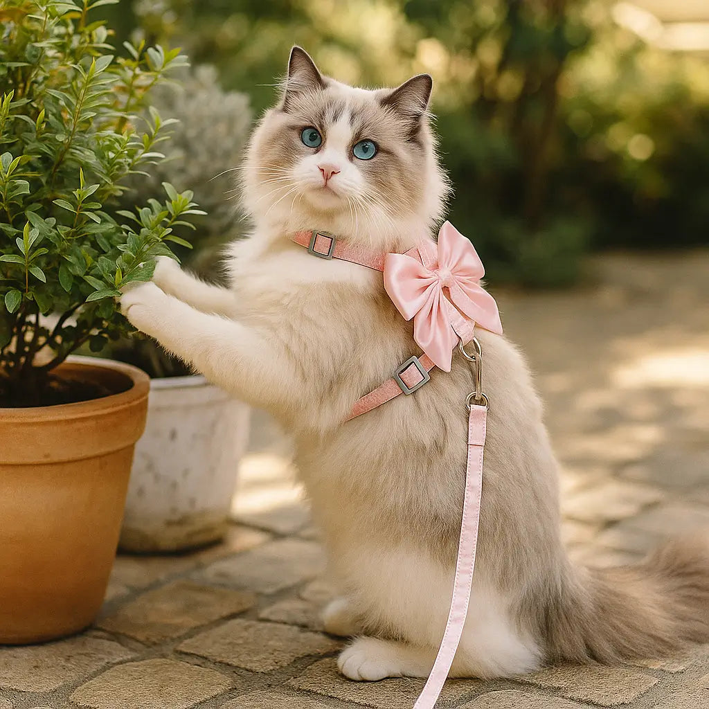 Katzengeschirr mit Leine | Verstellbar & Atmungsaktiv mit Schleife