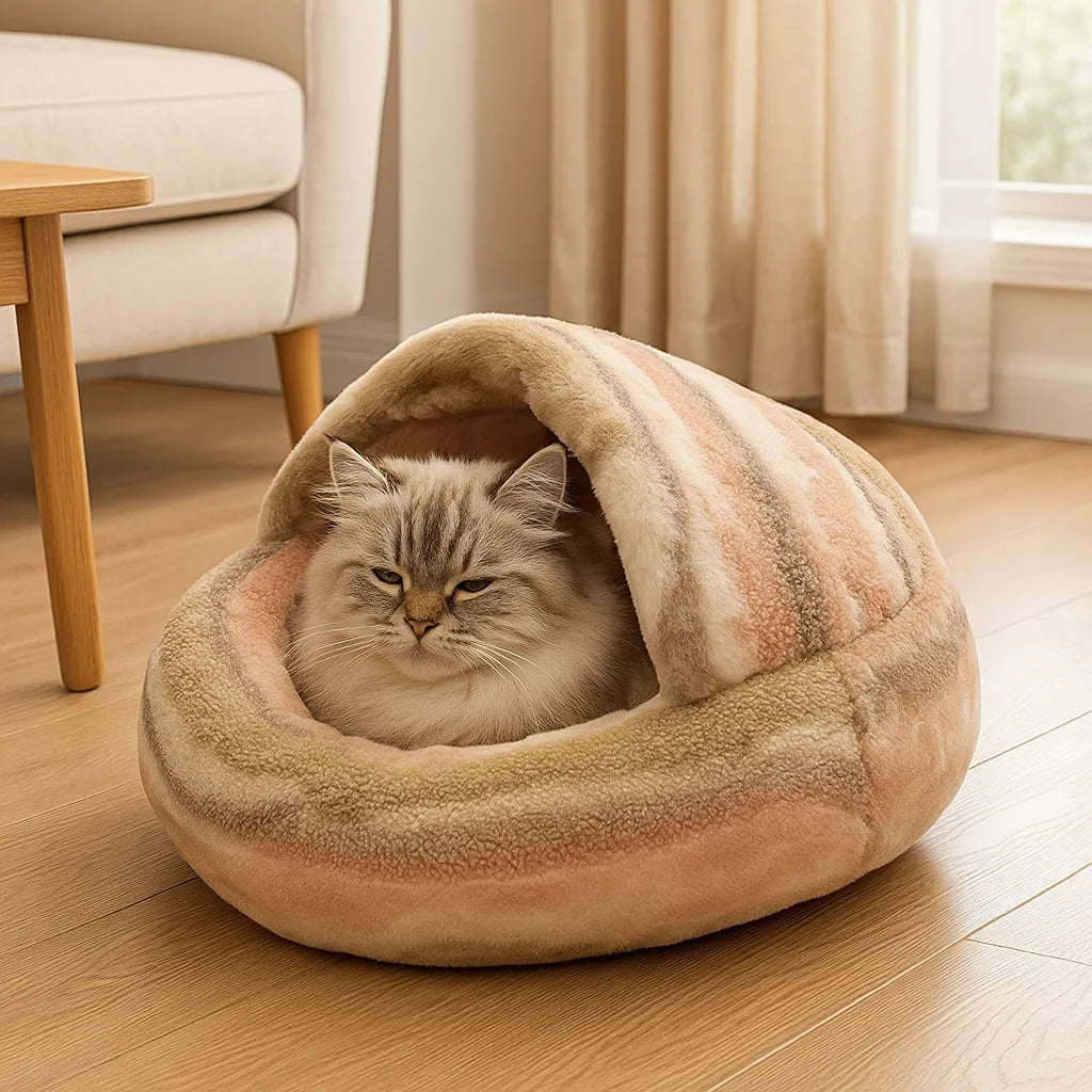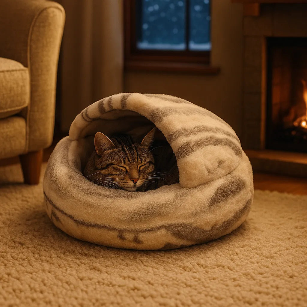 Katzenhöhle & Höhlenbett | Kuscheliges Bett mit Marmor-Design