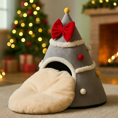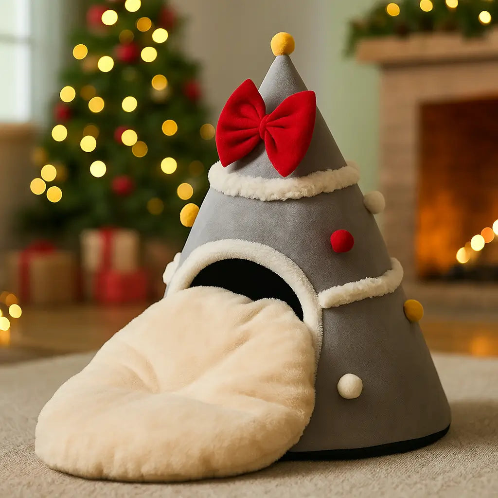Diese weiche Katzenhöhle im festlichen Design bietet deiner Katze einen sicheren und warmen Platz zum Schlafen und Entspannen.