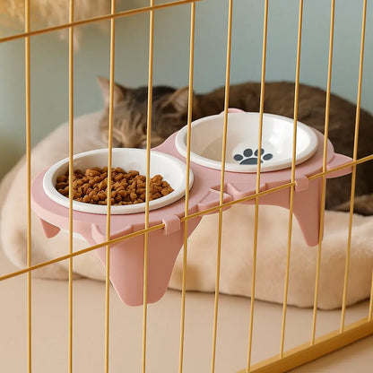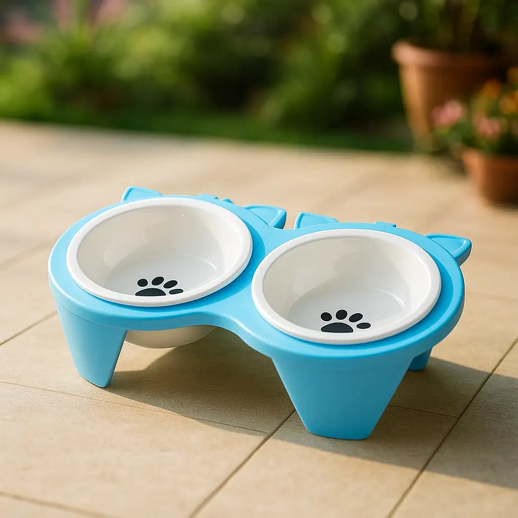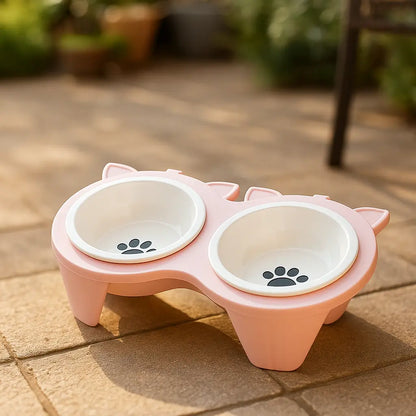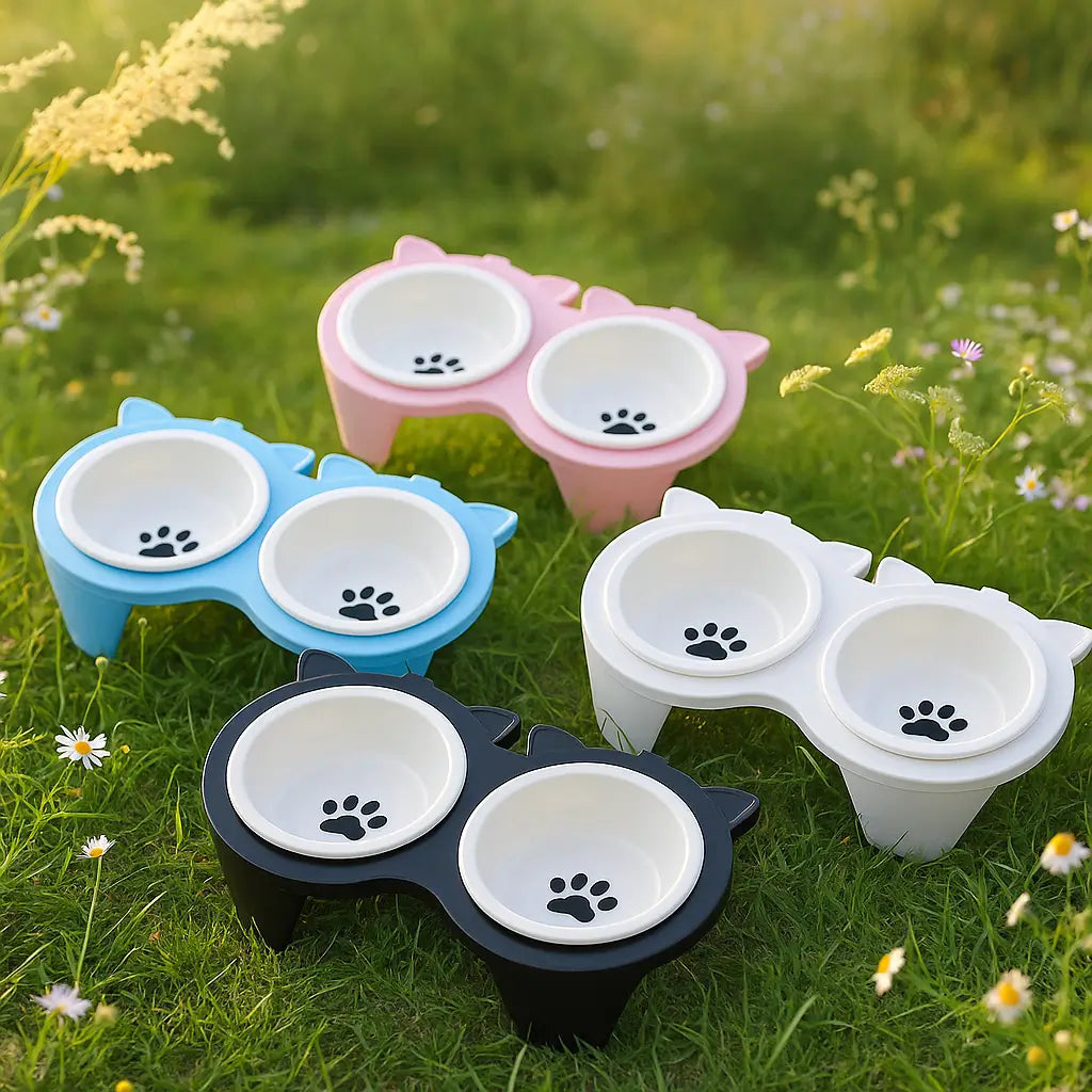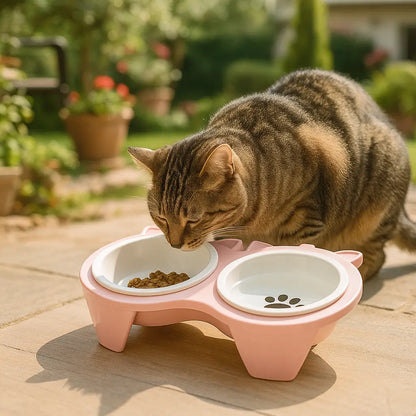Dieses elegante Katzennapf-Doppelset aus hochwertiger Keramik sorgt für eine bequeme und saubere Fütterung.