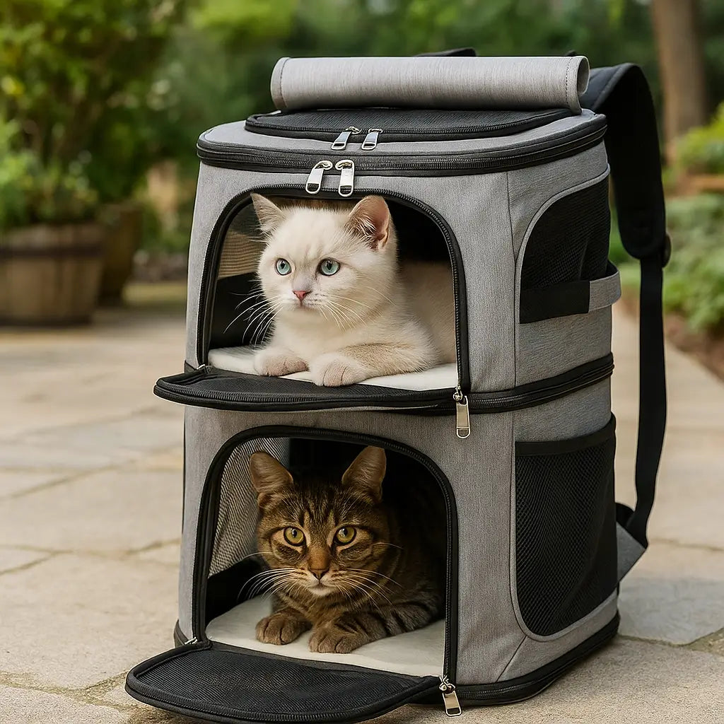 Das zweistöckige Design ermöglicht den Transport von zwei Katzen gleichzeitig oder bietet einem Tier besonders viel Raum zum Entspannen.