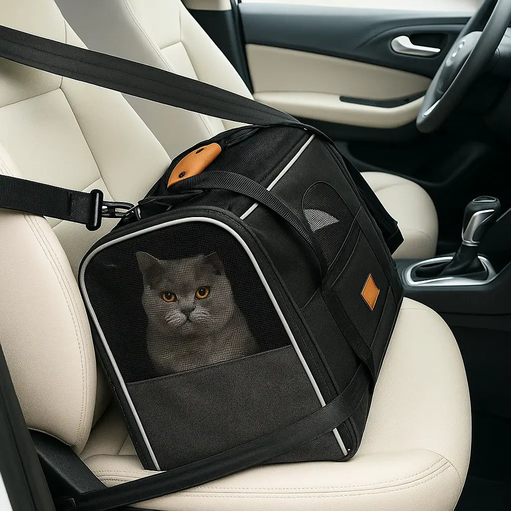 Mit Anti-Escape-Haken, stabilen Reißverschlüssen und Sicherheitsgurtbefestigung im Auto reist deine Katze sicher und geschützt.