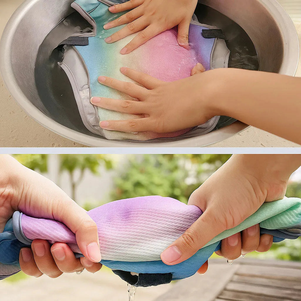 ●Schnelle und langanhaltende Abkühlung: Einfach ins kalte Wasser eintauchen und auswringen, die Weste aktiviert sich sofort und bleibt stundenlang kühl.