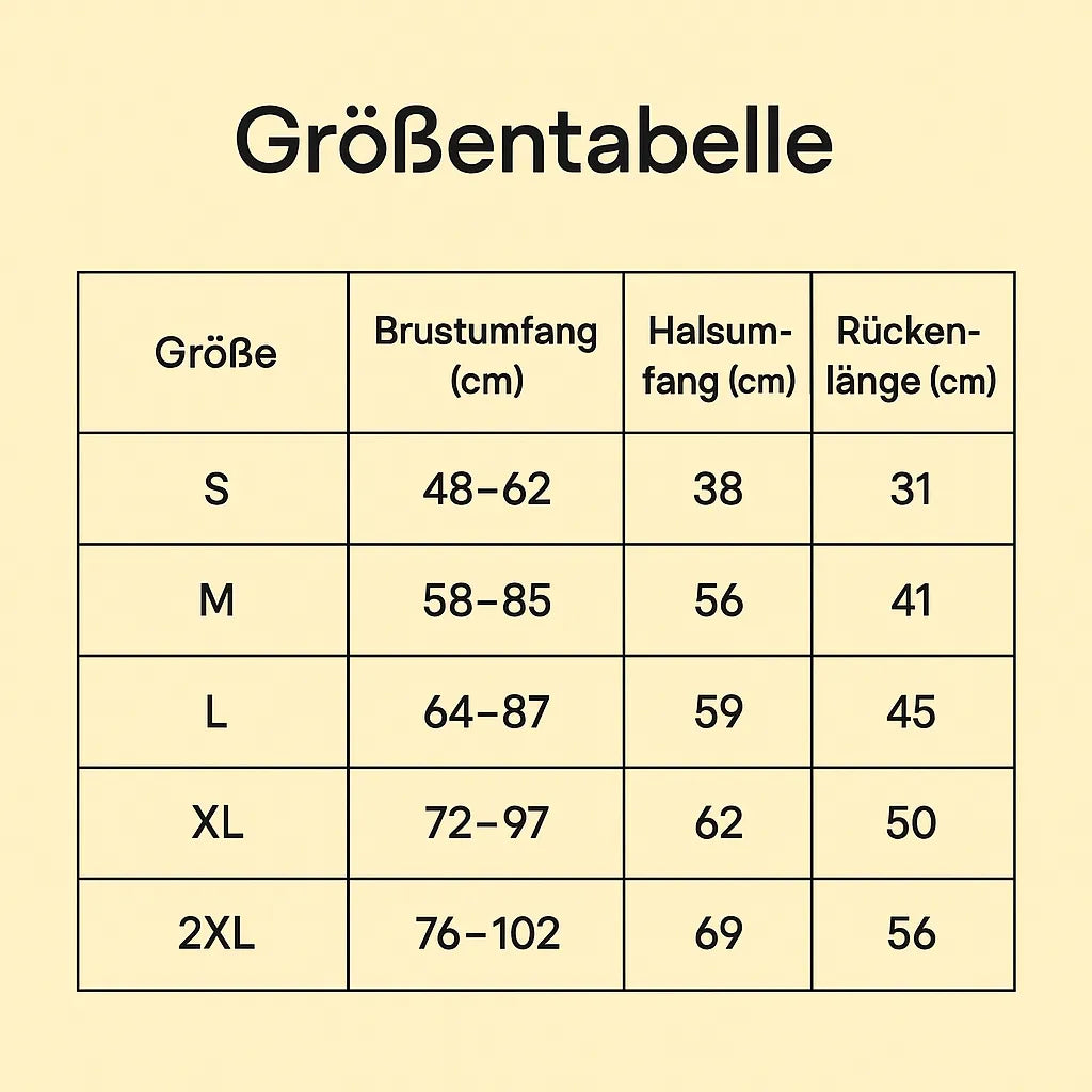 Größe Brustumfang (cm) Halsumfang (cm) Rückenlänge (cm)