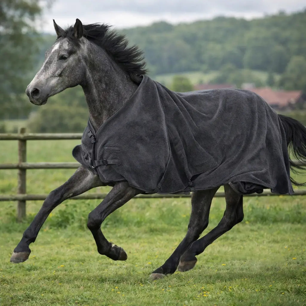Die großzügige Passform bietet ausreichend Bewegungsfreiheit und liegt angenehm auf dem Pferdekörper, ohne einzuengen.