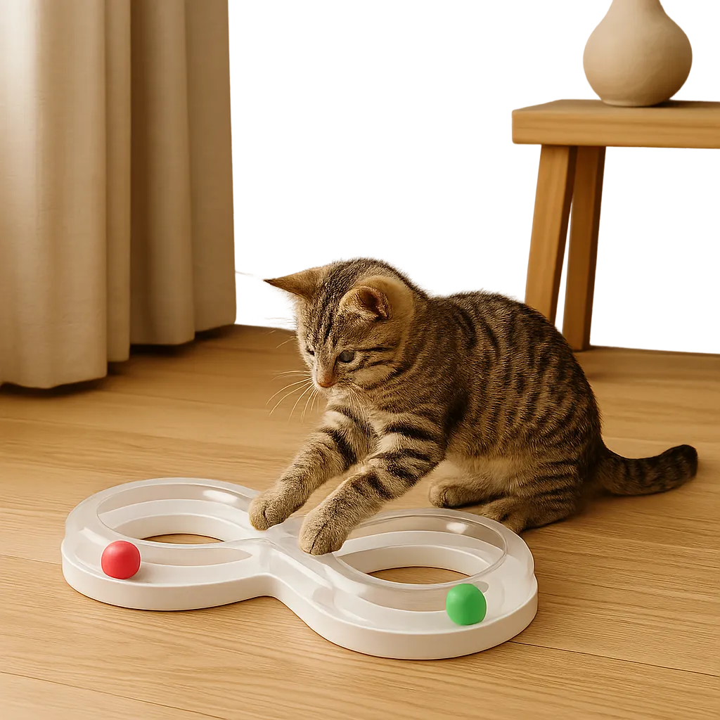 Katzen brauchen tägliche Beschäftigung, um glücklich und ausgeglichen zu bleiben. Der PlaySpinner ist das perfekte Spielzeug, um Jagdinstinkt, Bewegung und mentale Stimulation zu vereinen. Die farbigen Kugeln bewegen sich durch leichte Pfotenstupser im Kreis und wecken so sofort das Interesse deiner Katze – ganz ohne Batterien oder Aufwand. Ideal für Stubentiger, die alleine zuhause sind oder sich schnell langweilen.
