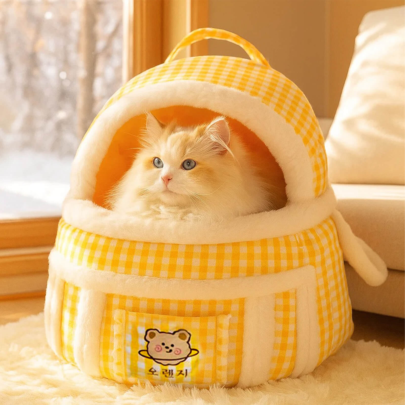 Das weiche Plüsch-Innenfutter schenkt Geborgenheit und hält deine Katze angenehm warm, ideal für kalte Tage.
