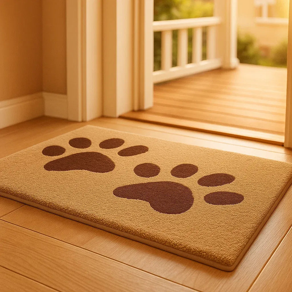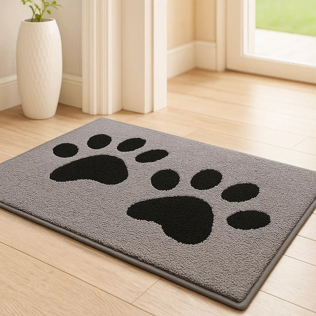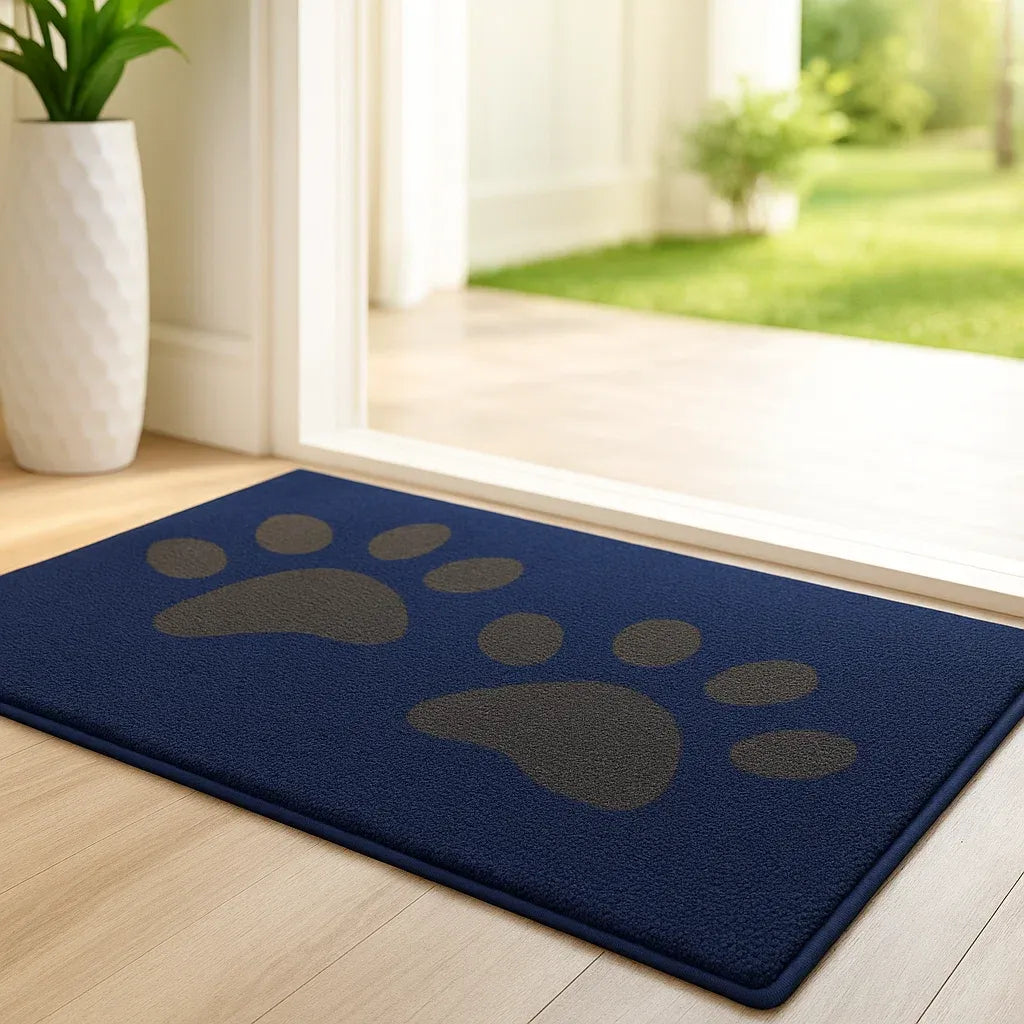 Diese Schmutzfangmatte für Hunde mit niedlichem Pfotenmuster hält dein Zuhause sauber und trocken, auch nach Spaziergängen im Regen.