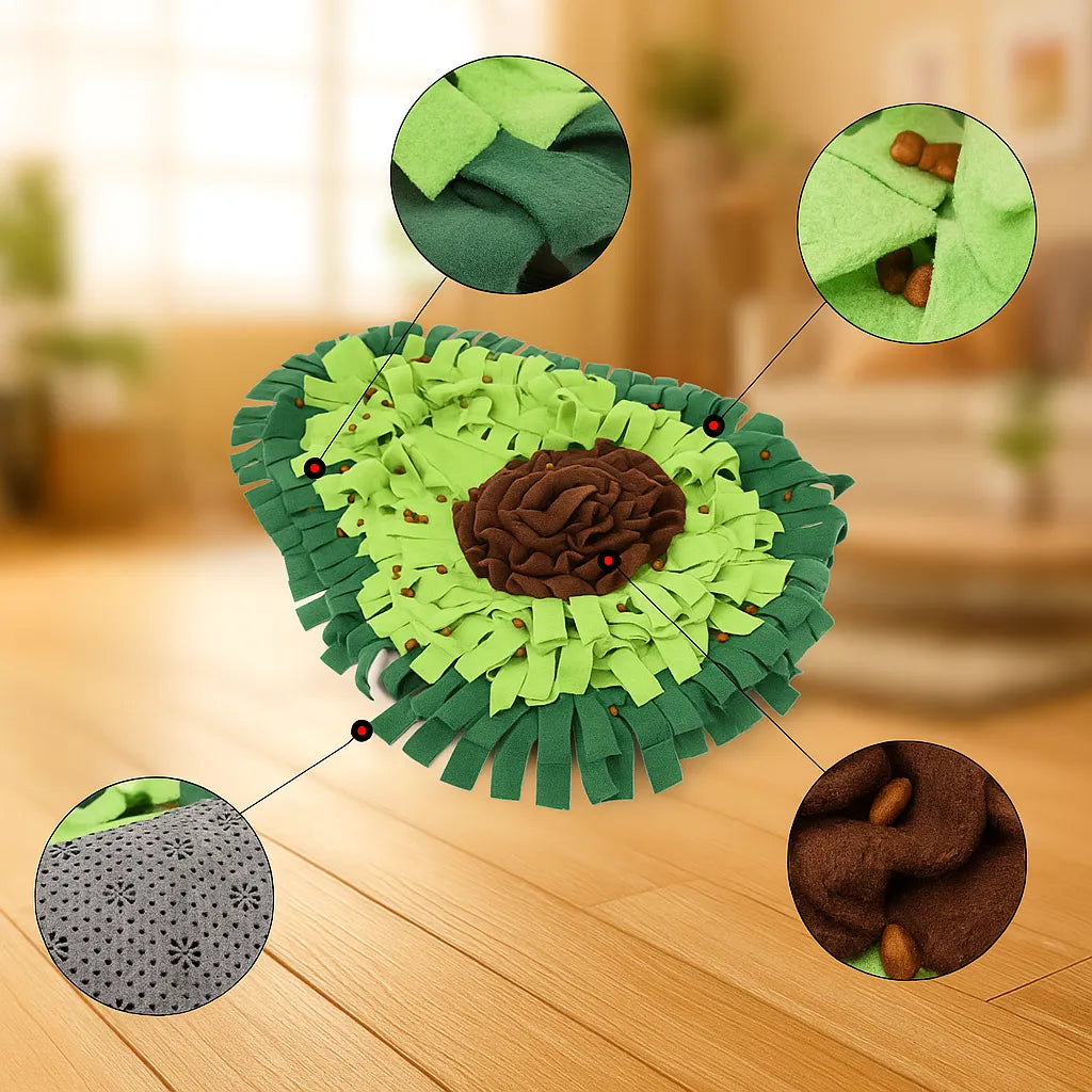 Mach jede Mahlzeit zu einem spannenden Abenteuer – mit dieser Avocado Snuffelmat kombinierst du Spielspaß, Training und artgerechte Fütterung in einem. Die liebevoll gestaltete, halbe Avocado-Form weckt den natürlichen Such- und Schnüffeltrieb deines Hundes, sorgt für langsameres Fressen und verhindert Langeweile.