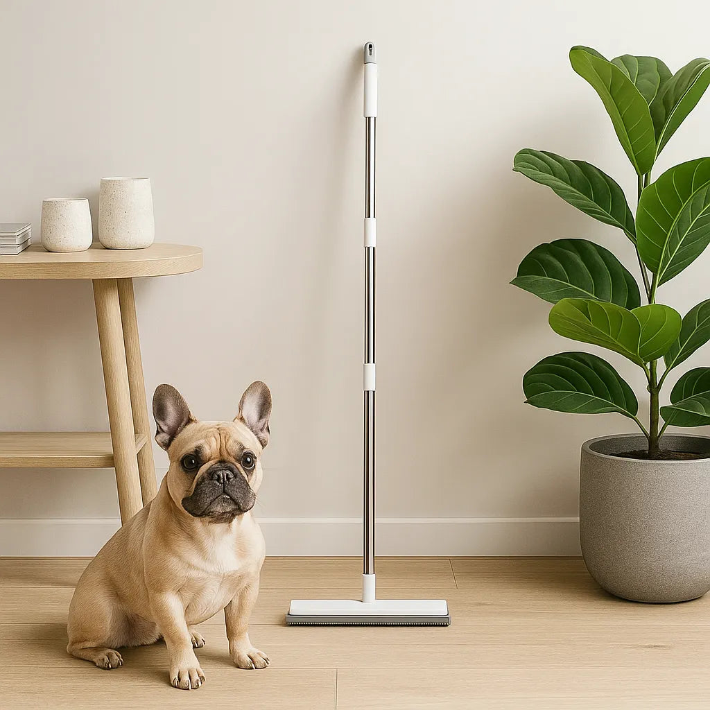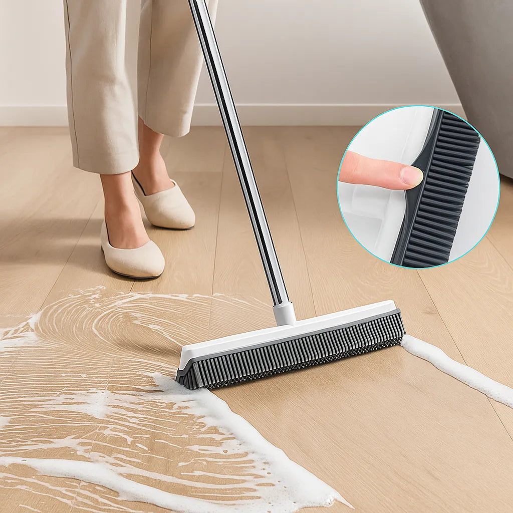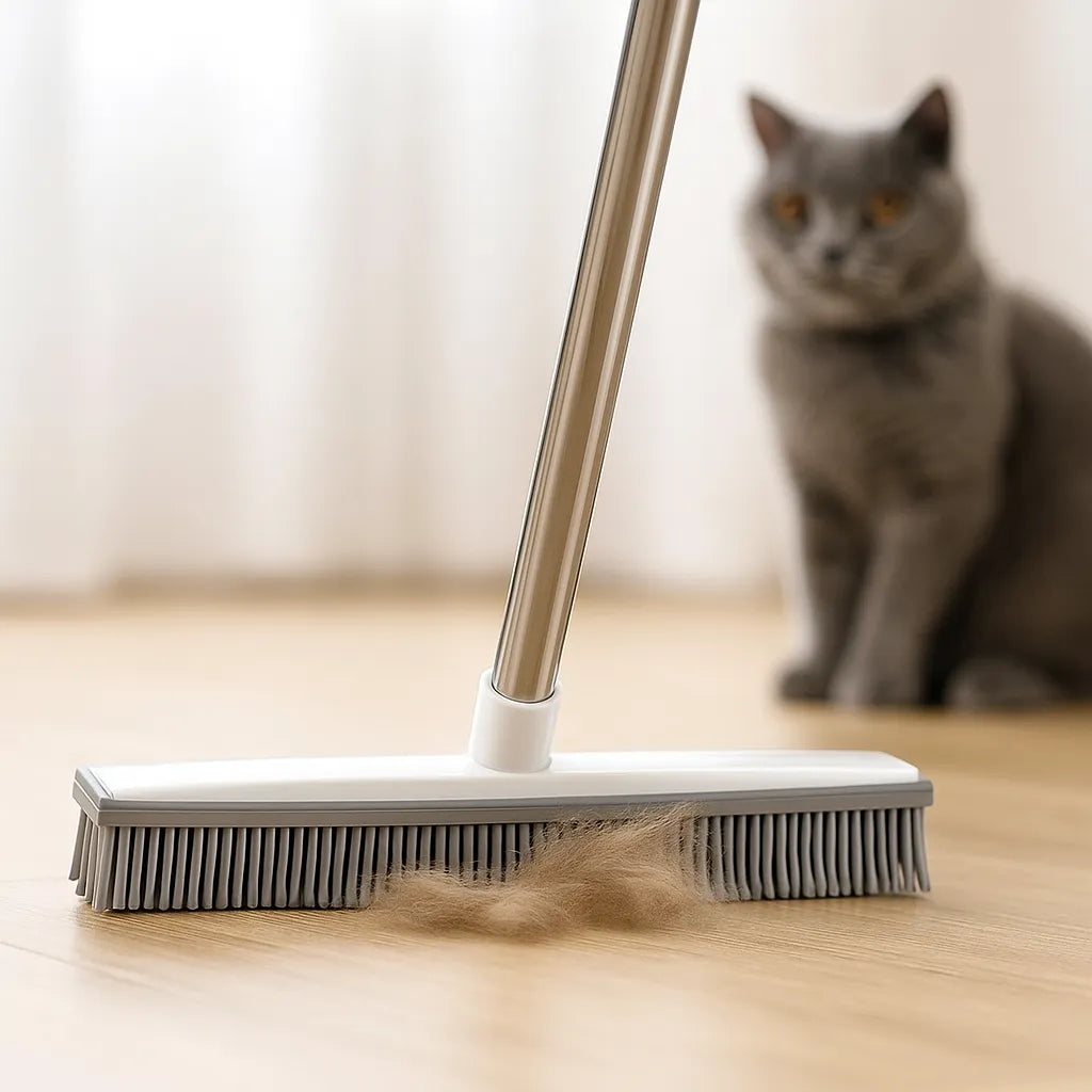 Tierhaare auf Böden, Teppichen oder zwischen Möbeln können zur täglichen Herausforderung werden. Dieser Tierhaarbesen mit weichen Gummiborsten entfernt Haare gründlich, ganz ohne Strom oder Lärm. Der verstellbare Teleskopgriff sorgt dafür, dass du selbst schwer erreichbare Ecken bequem reinigen kannst, für ein hygienisches Zuhause.