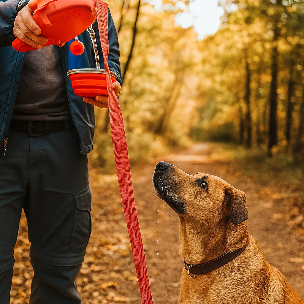 Ob beim Wandern, Training oder an heißen Tagen – dein Hund hat immer Zugang zu Wasser. Kein extra Napf nötig.