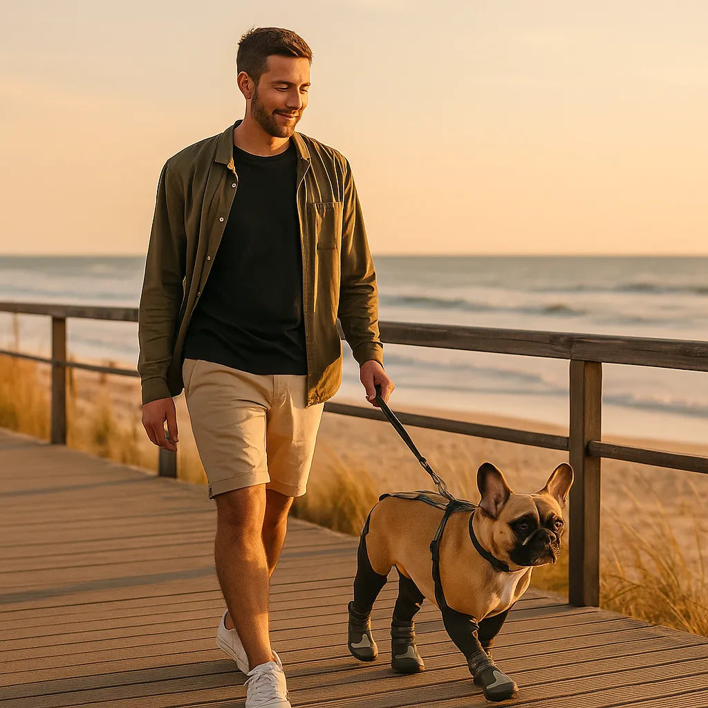 Die verstellbaren Gurte sorgen für 360-Grad-Sitz – ideal für große, aktive Hunde. Kein Nachjustieren, kein Verlieren – nur sichere Pfoten unterwegs.